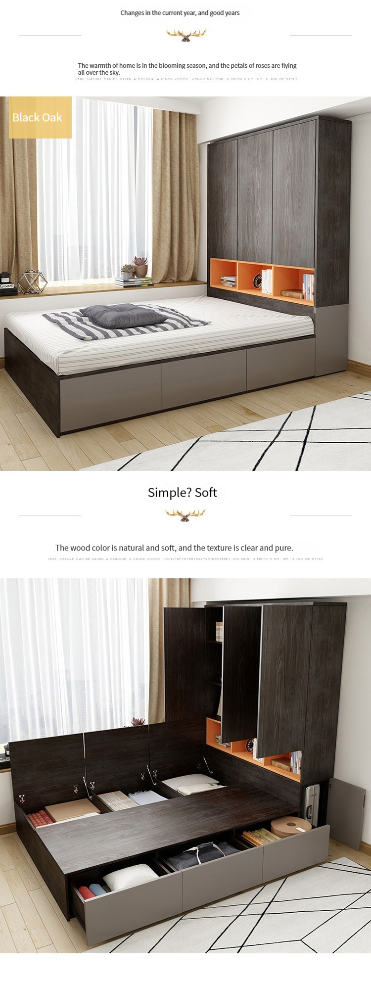 120cm bed, 120cm bed + wardrobe, 150cm bed, 150cm bed + wardrobe