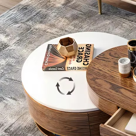 Wooden Tabletop Iron Legs Rotatable Coffee Table Set