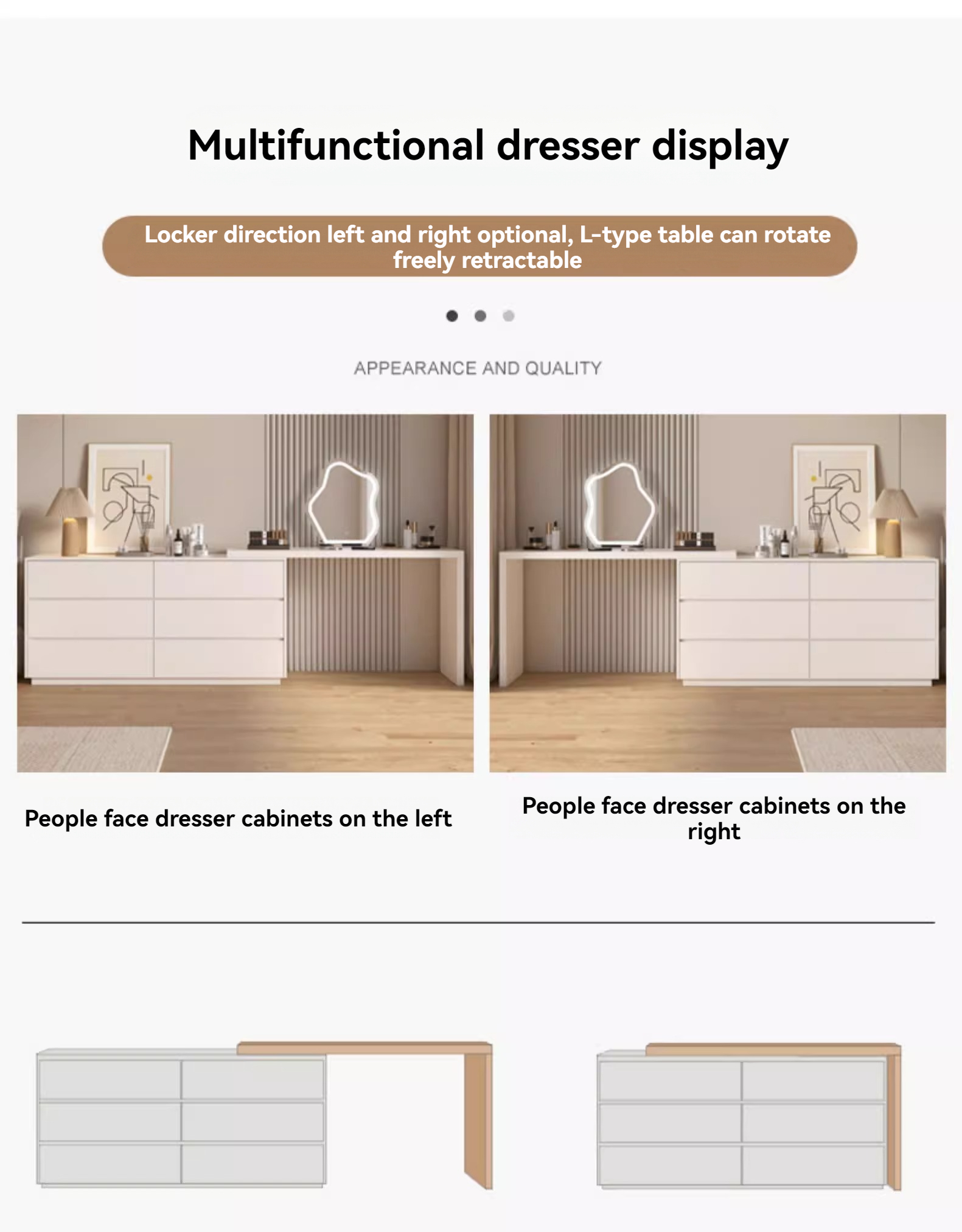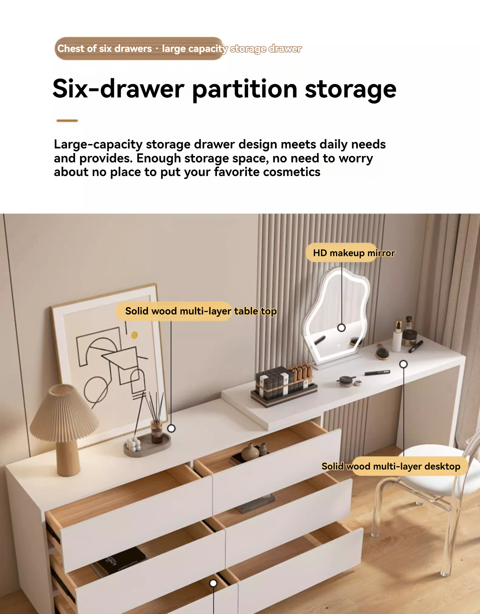 [Pre-order] (Paint-free) Solid wood chest of drawers dressing table storage cabinet combination all-in-one multifunctional bedroom telescopic corner dressing table-Smart-Living [Pre-order] (Paint-free) Solid wood chest of drawers dressing table storage cabinet combination all-in-one multifunctional bedroom telescopic corner dressing table-Smart-Living