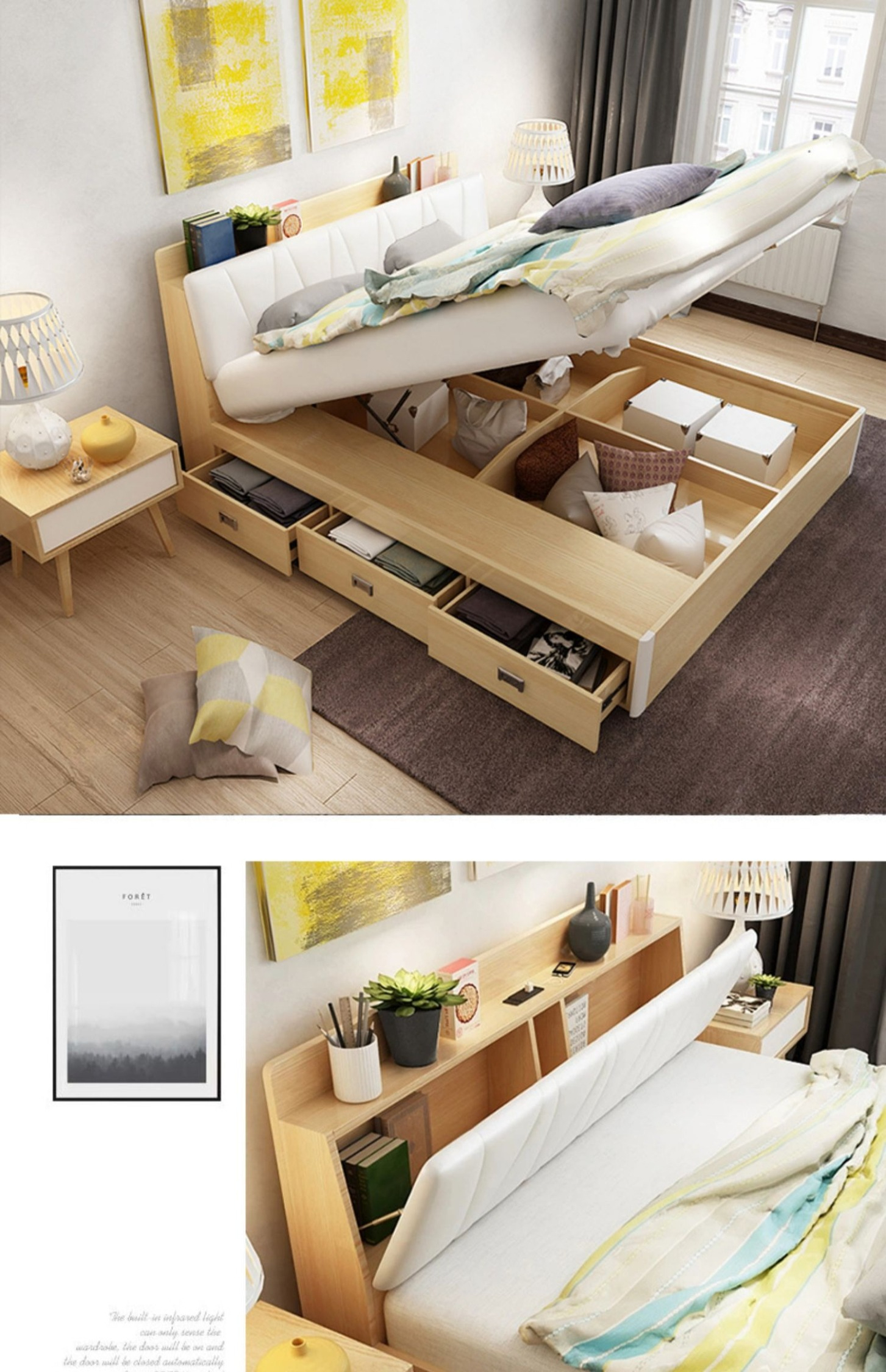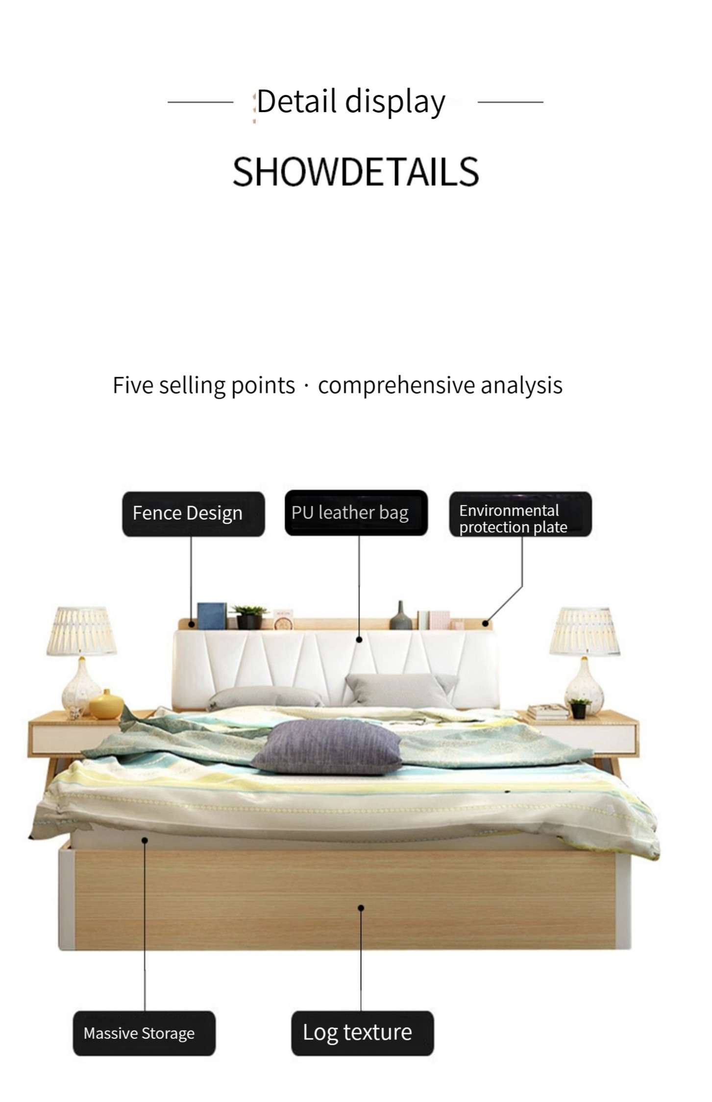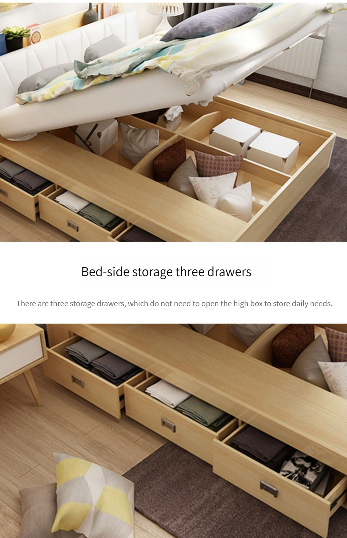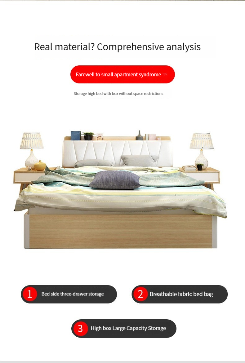 [Pre-order] Scandinavian bed, modern and simple storage bed, economical 1.8m/1.5m double bed for master bedroom, small-sized soft-packed high-box bed.-Smart-Living [Pre-order] Scandinavian bed, modern and simple storage bed, economical 1.8m/1.5m double bed for master bedroom, small-sized soft-packed high-box bed.-Smart-Living