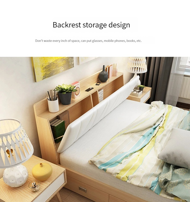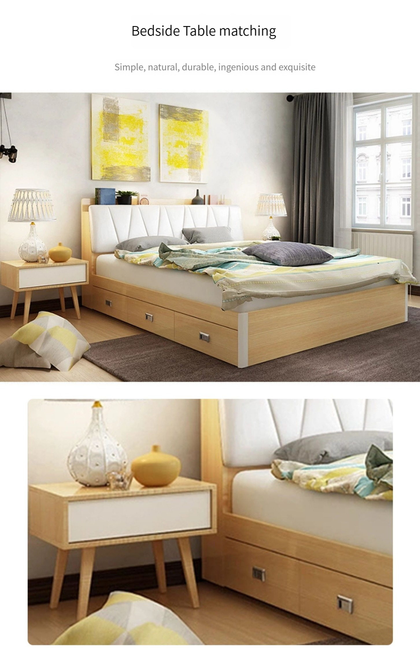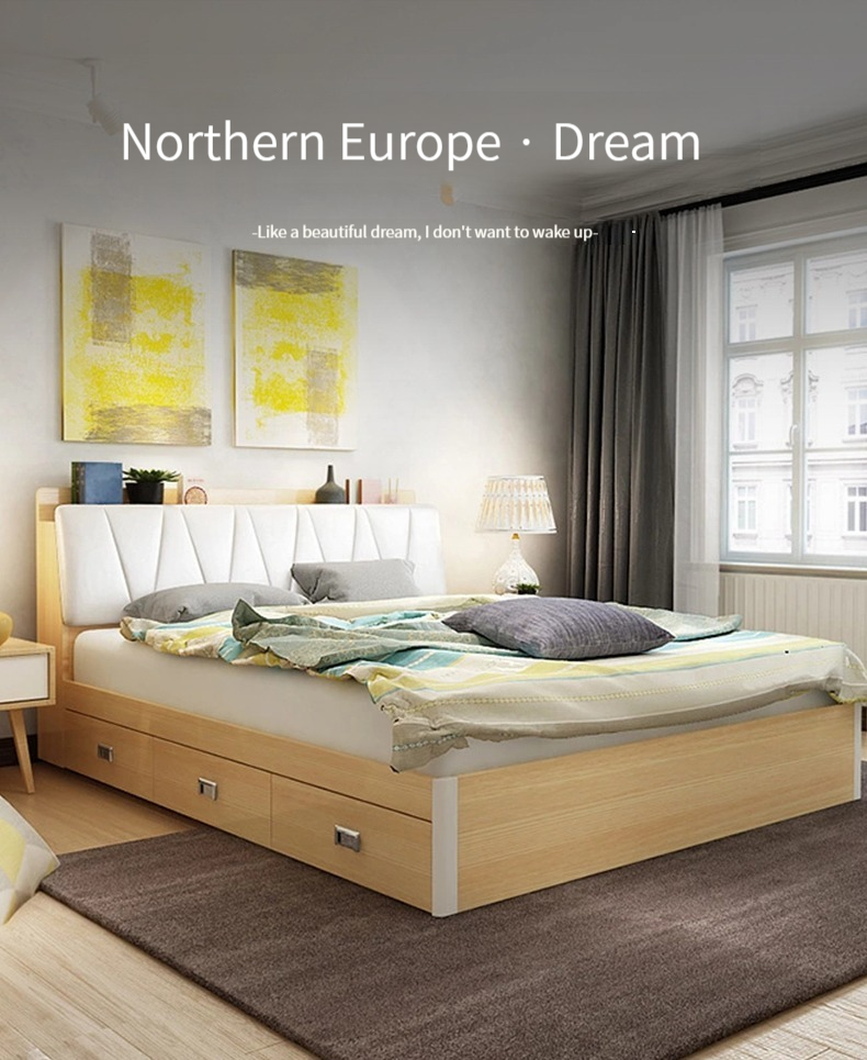 [Pre-order] Scandinavian bed, modern and simple storage bed, economical 1.8m/1.5m double bed for master bedroom, small-sized soft-packed high-box bed.
