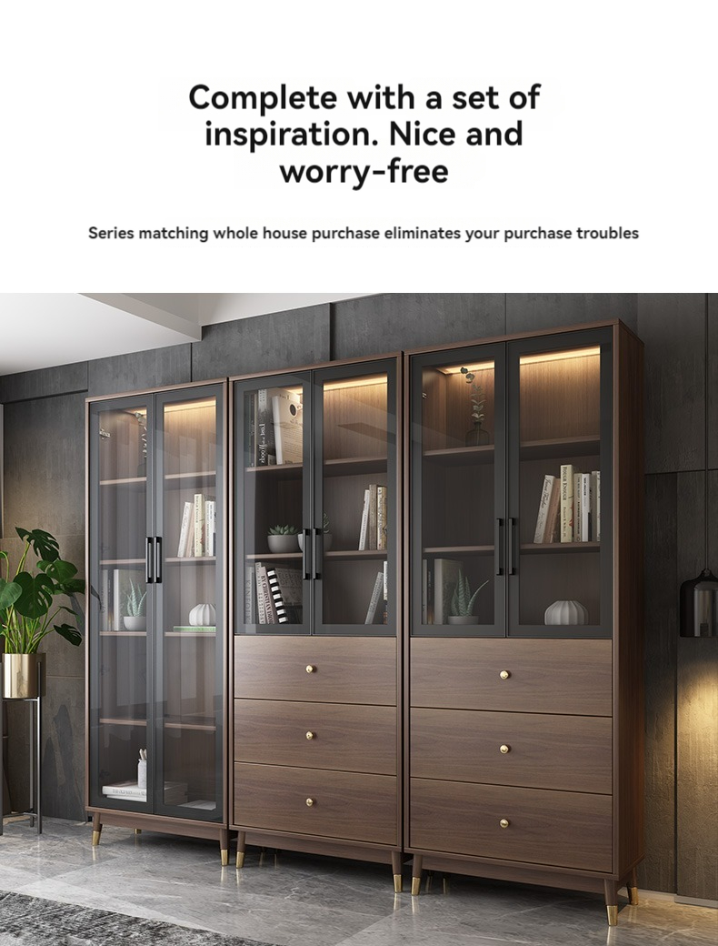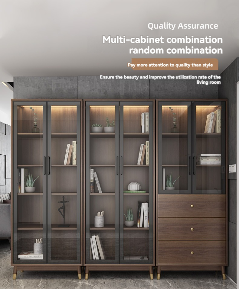 [Pre-order] Oulang Scandinavian simple bookcase with glass door bookcase shelf combination modern household solid wood foot bookcase storage cabinet-Smart-Living [Pre-order] Oulang Scandinavian simple bookcase with glass door bookcase shelf combination modern household solid wood foot bookcase storage cabinet-Smart-Living