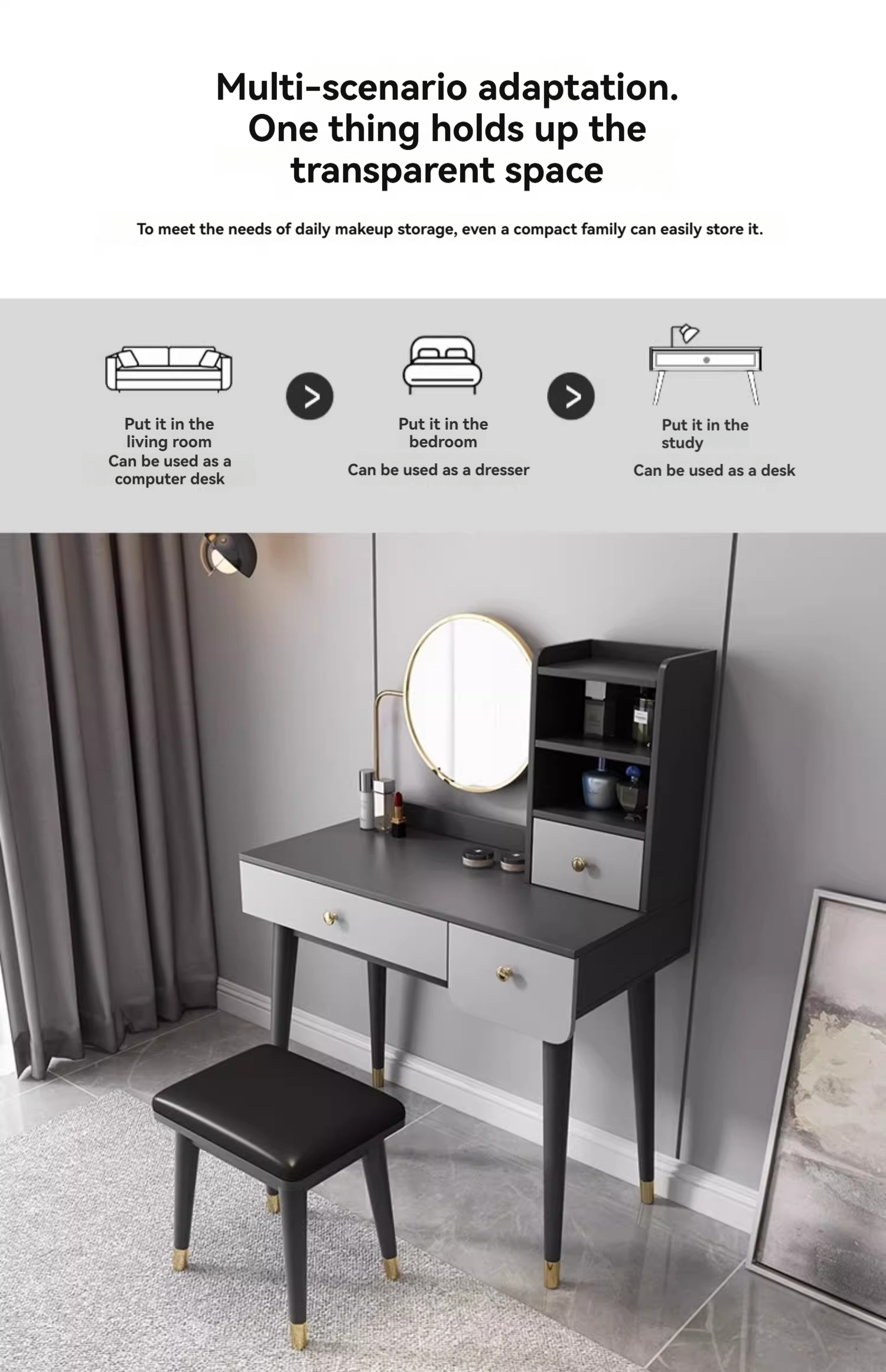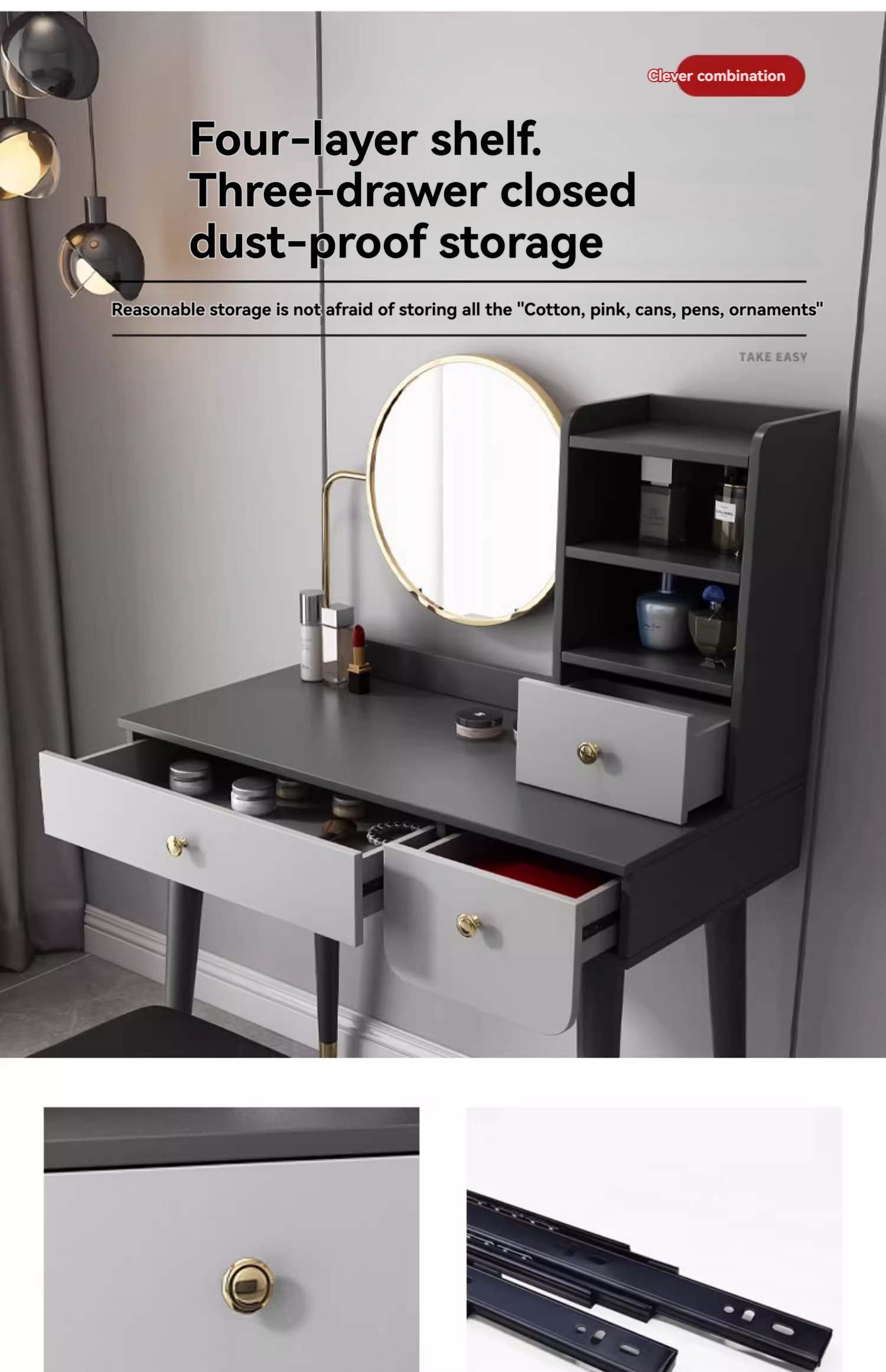 [Pre-order] Oulang Scandinavian simple net red ins style mini dresser modern bedroom light luxury small household creative makeup table-Smart-Living [Pre-order] Oulang Scandinavian simple net red ins style mini dresser modern bedroom light luxury small household creative makeup table-Smart-Living