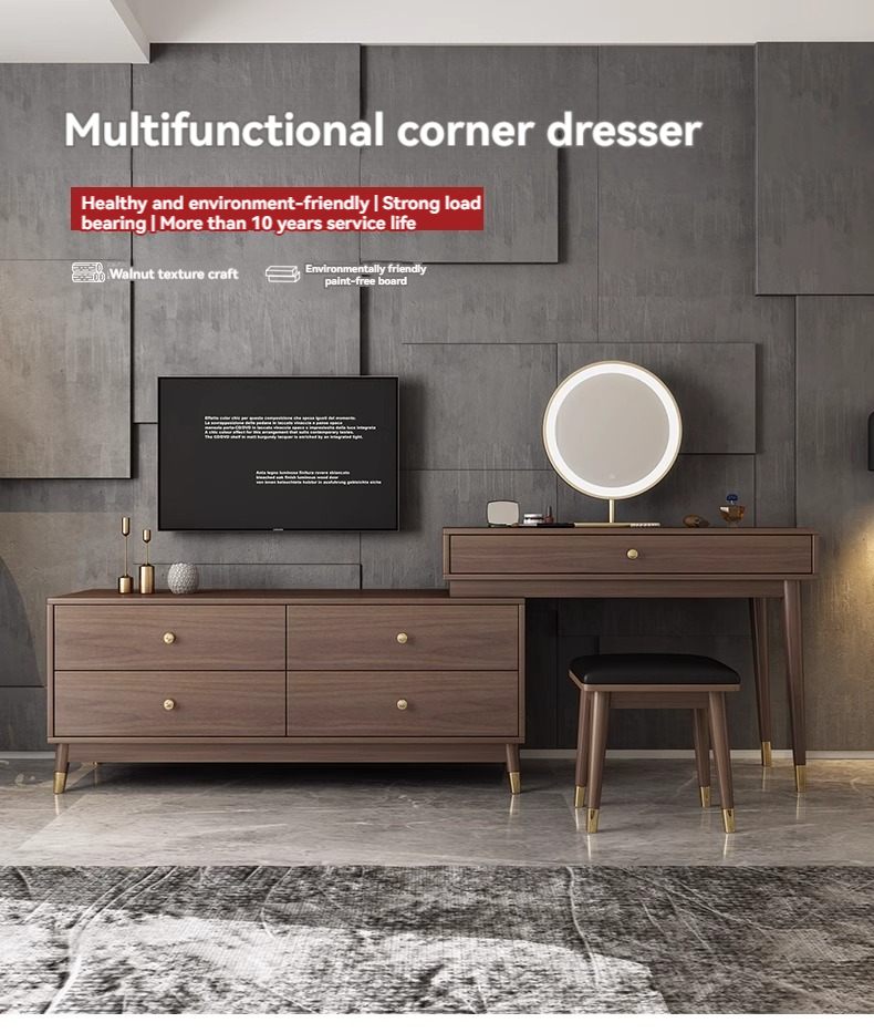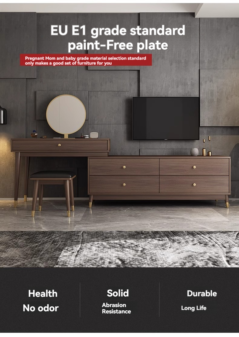 Model No. WX-Solid Wood-599-Dresser 5 Drawers Round Mirror 2