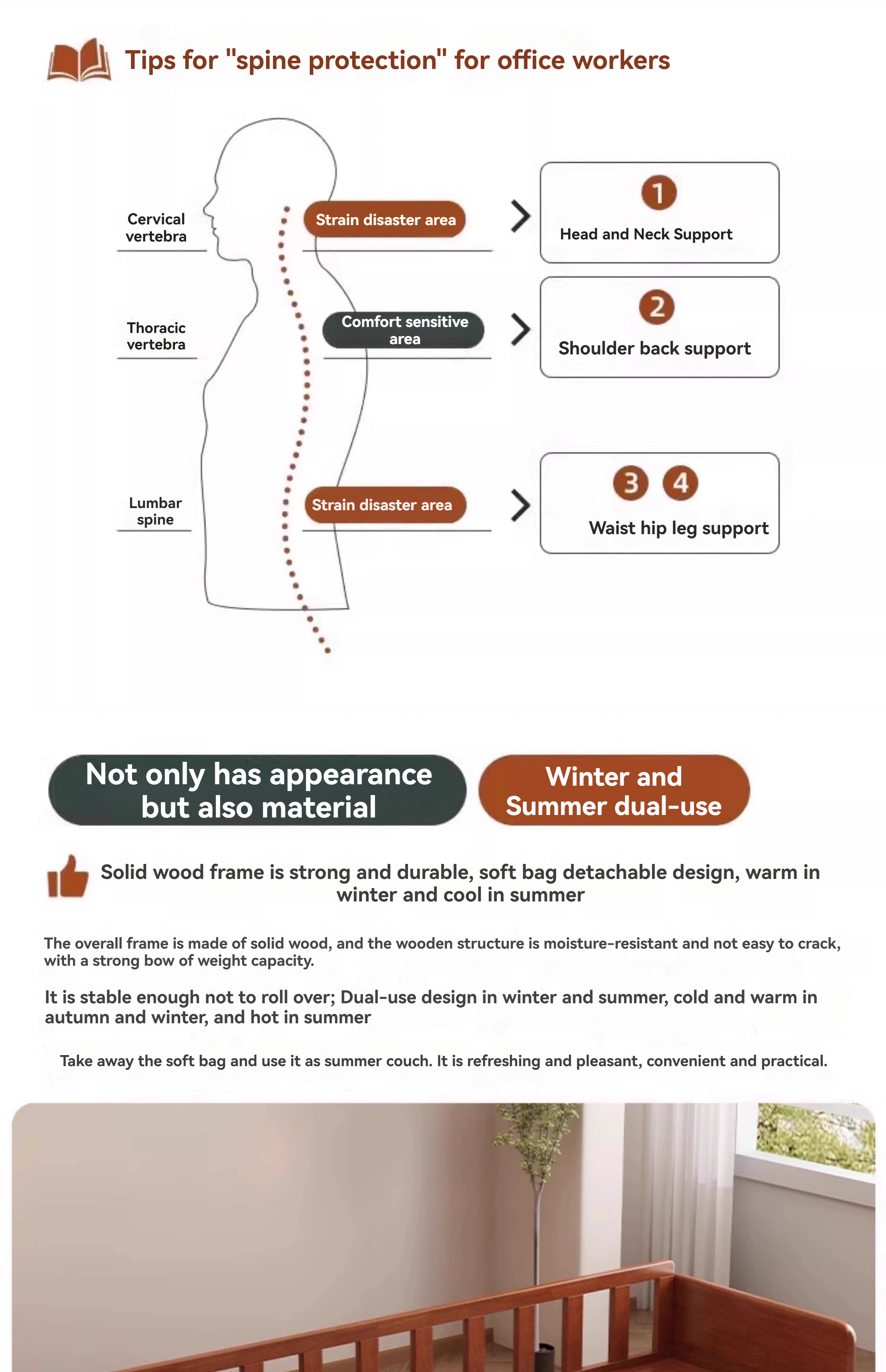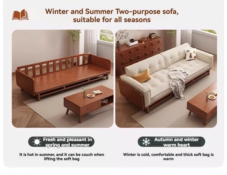 Winter and Summer dual-use three-seater Japanese-style log-style fabric sofa