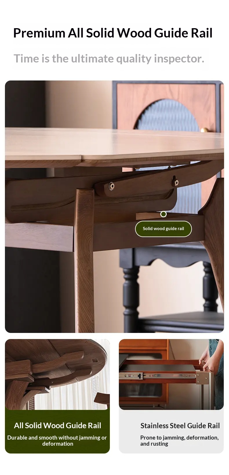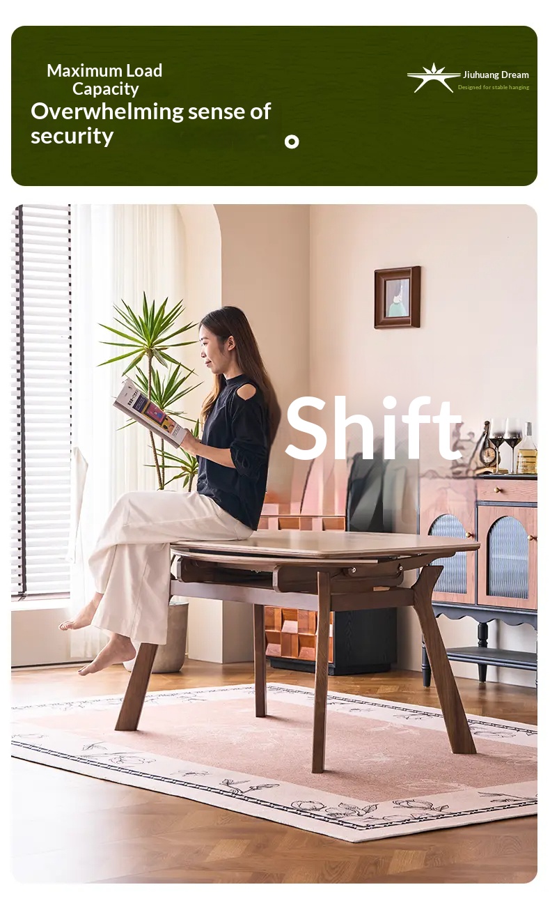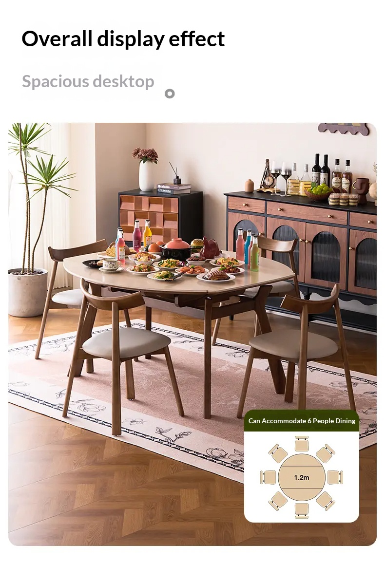 [PRE-ORDER] Solid Vintage-style wind tunnel stone slab solid wood telescopic dining table.