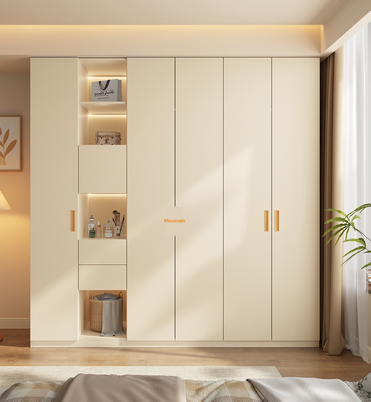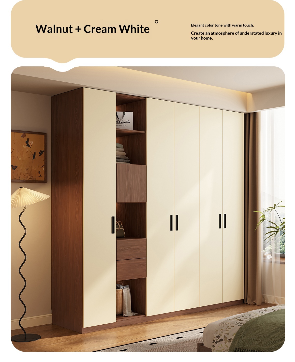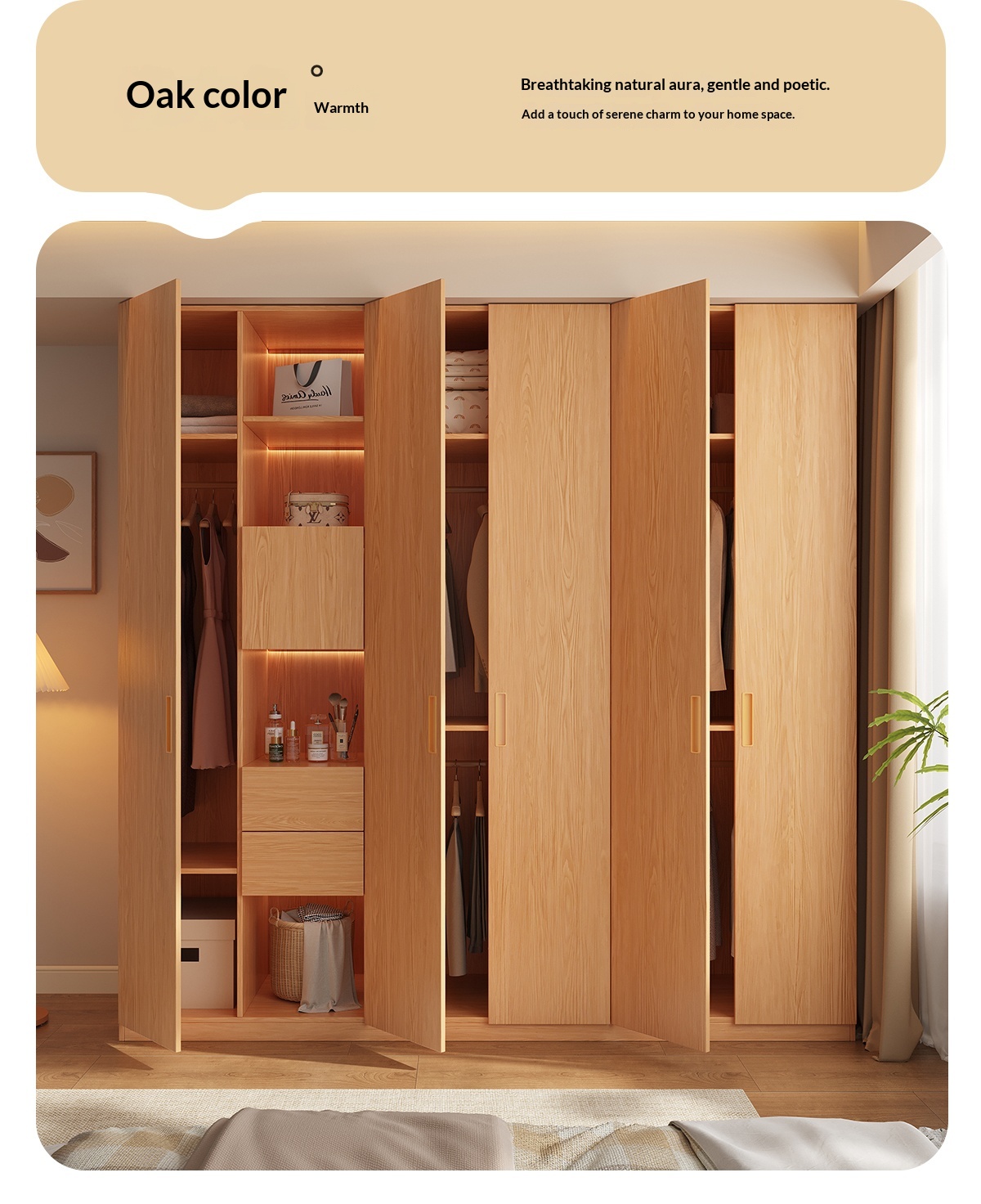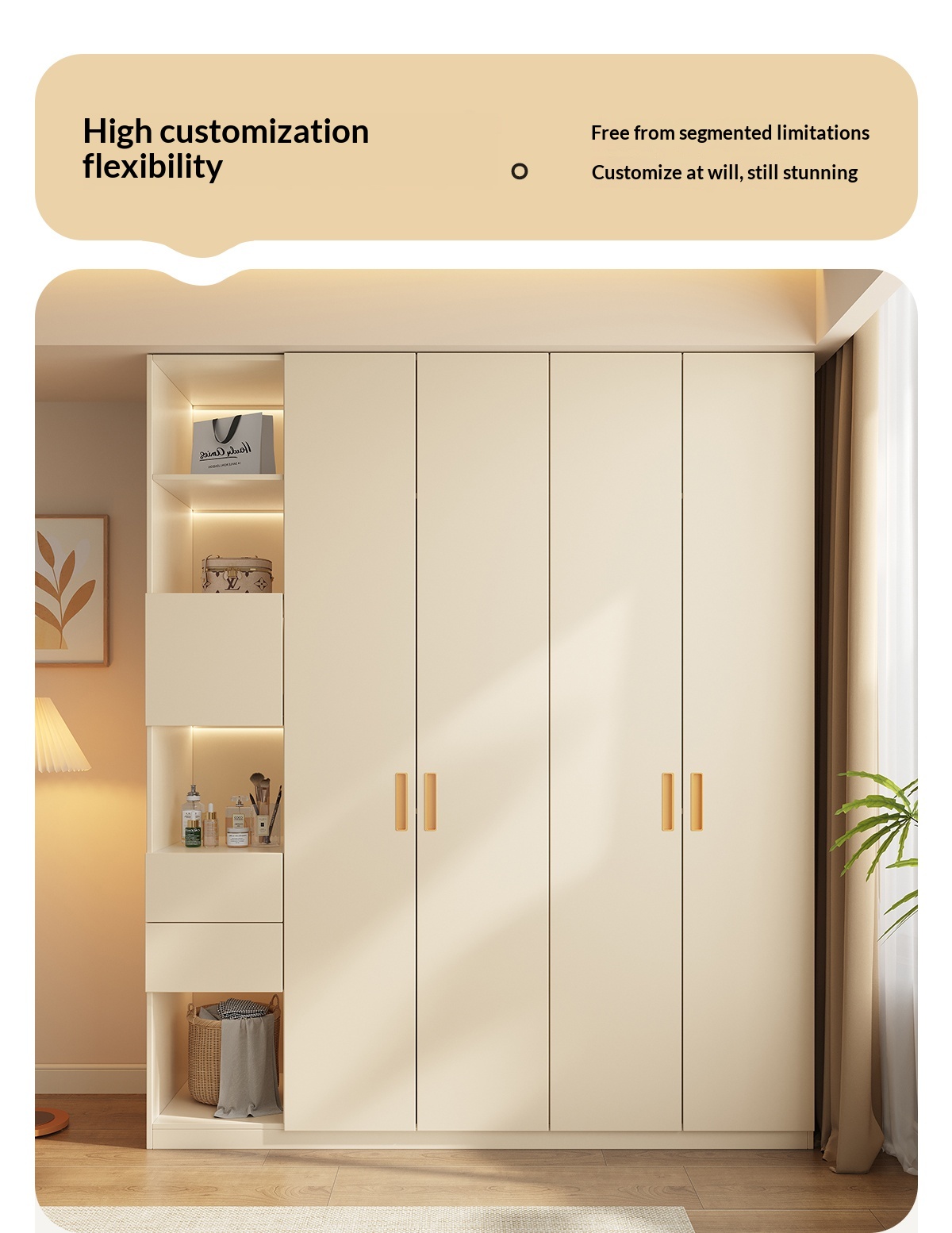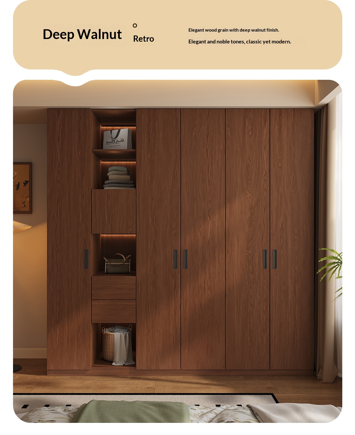 [PRE-ORDER] Solid wood built-in handle wardrobe, home bedroom storage cabinet