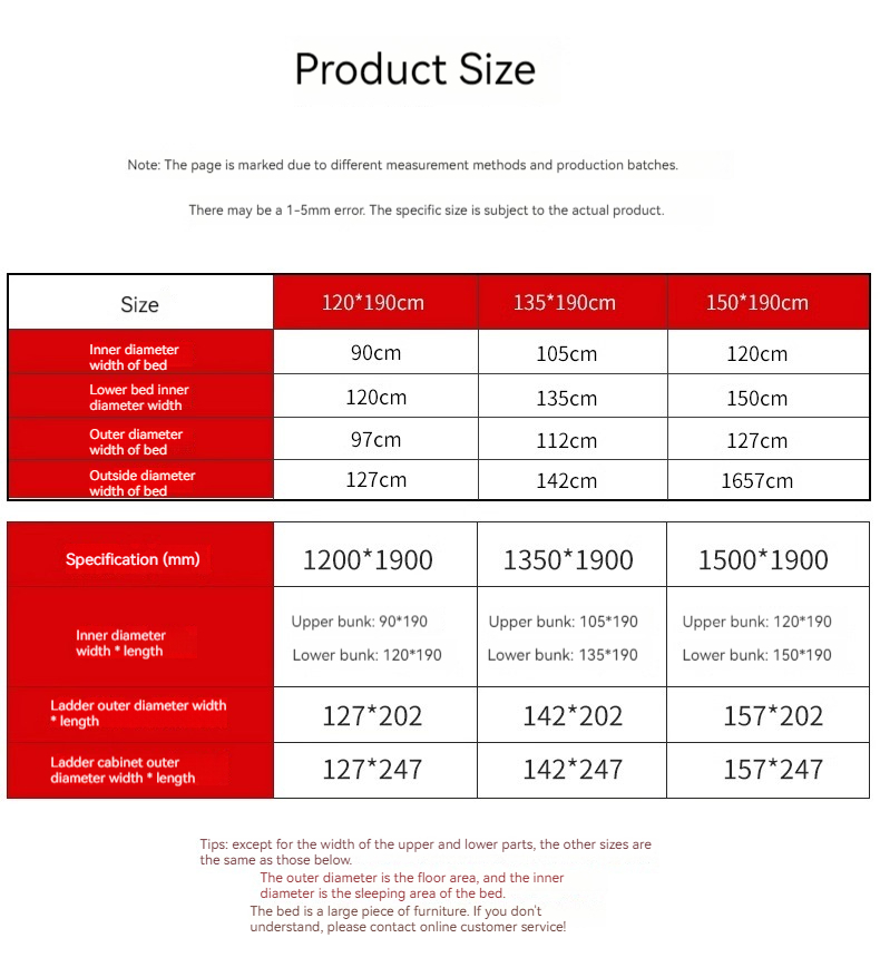 1.35*1.9m bunk bed:1.35*1.9m getting on and off the bed