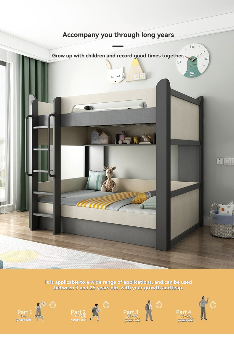 [Pre order] Solid Wood Children's Bunk Bed with Ladder Cabinets and Mattresses for Parent-Child Use