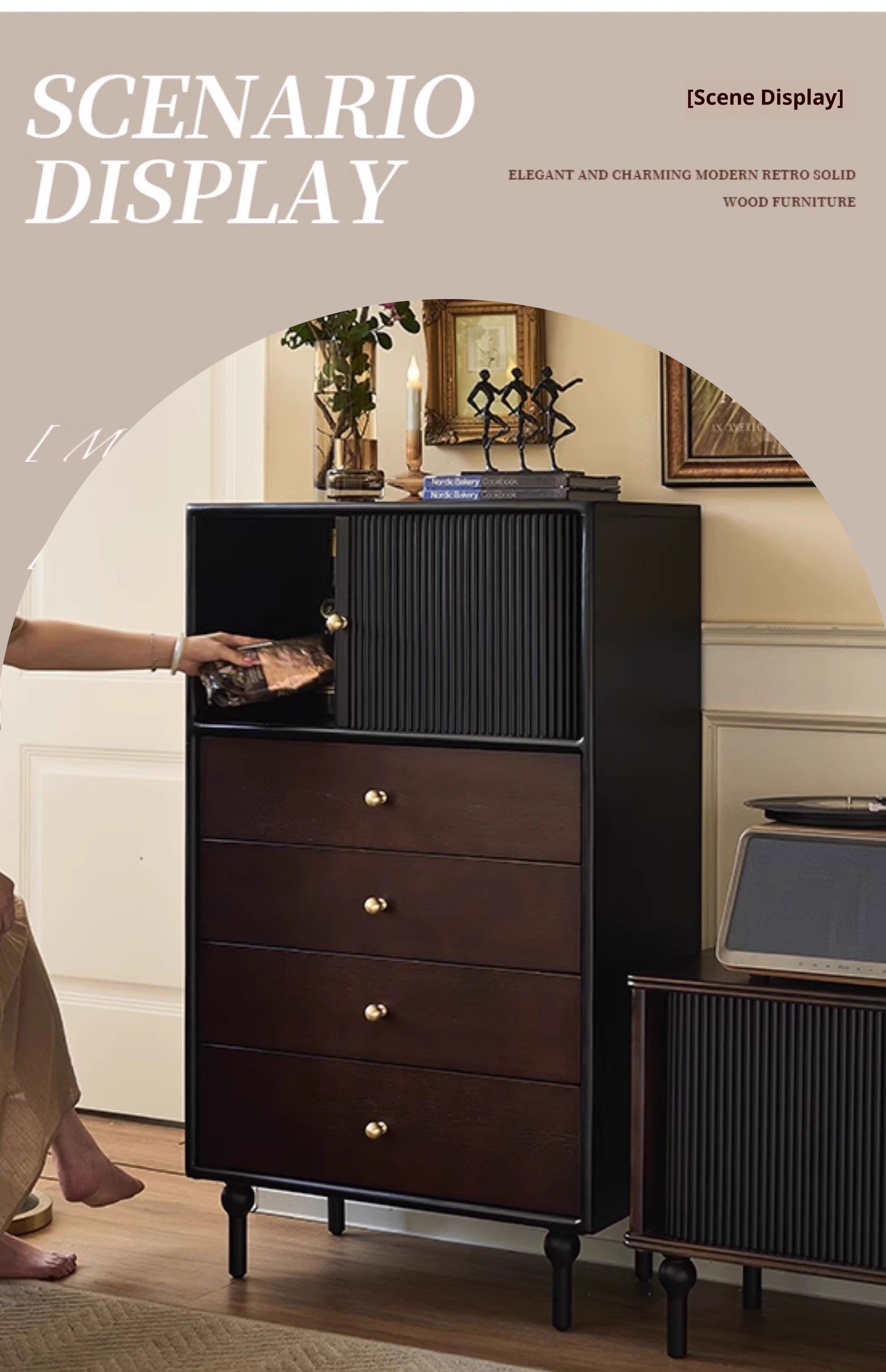 [PRE-ORDER] Solid wood four-drawer French retro living room side cabinet