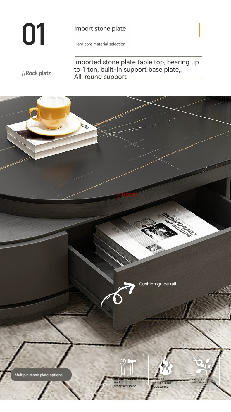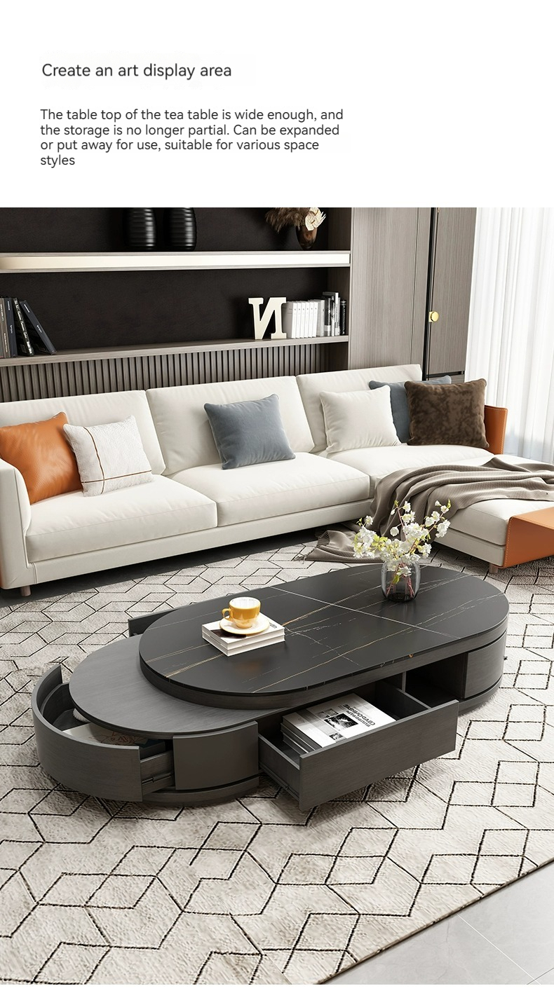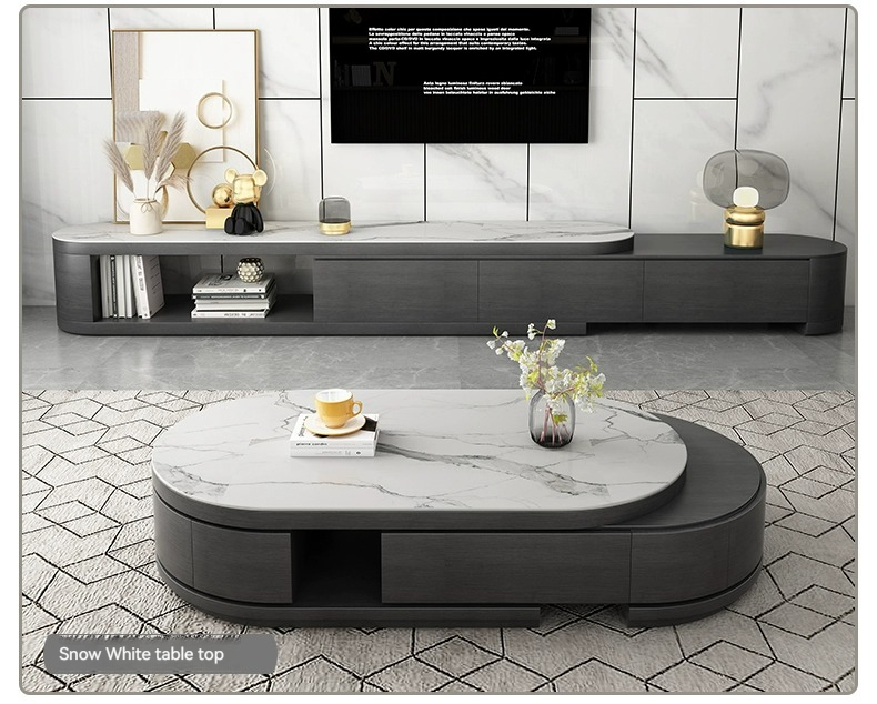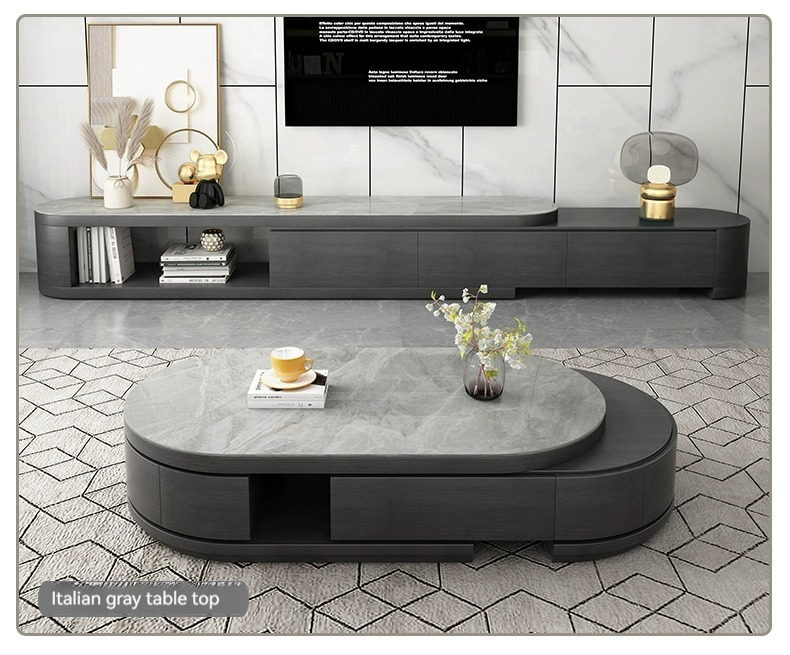 [grey] table+cab:【 Italian gray 】 Telescopic coffee table + TV cabinet