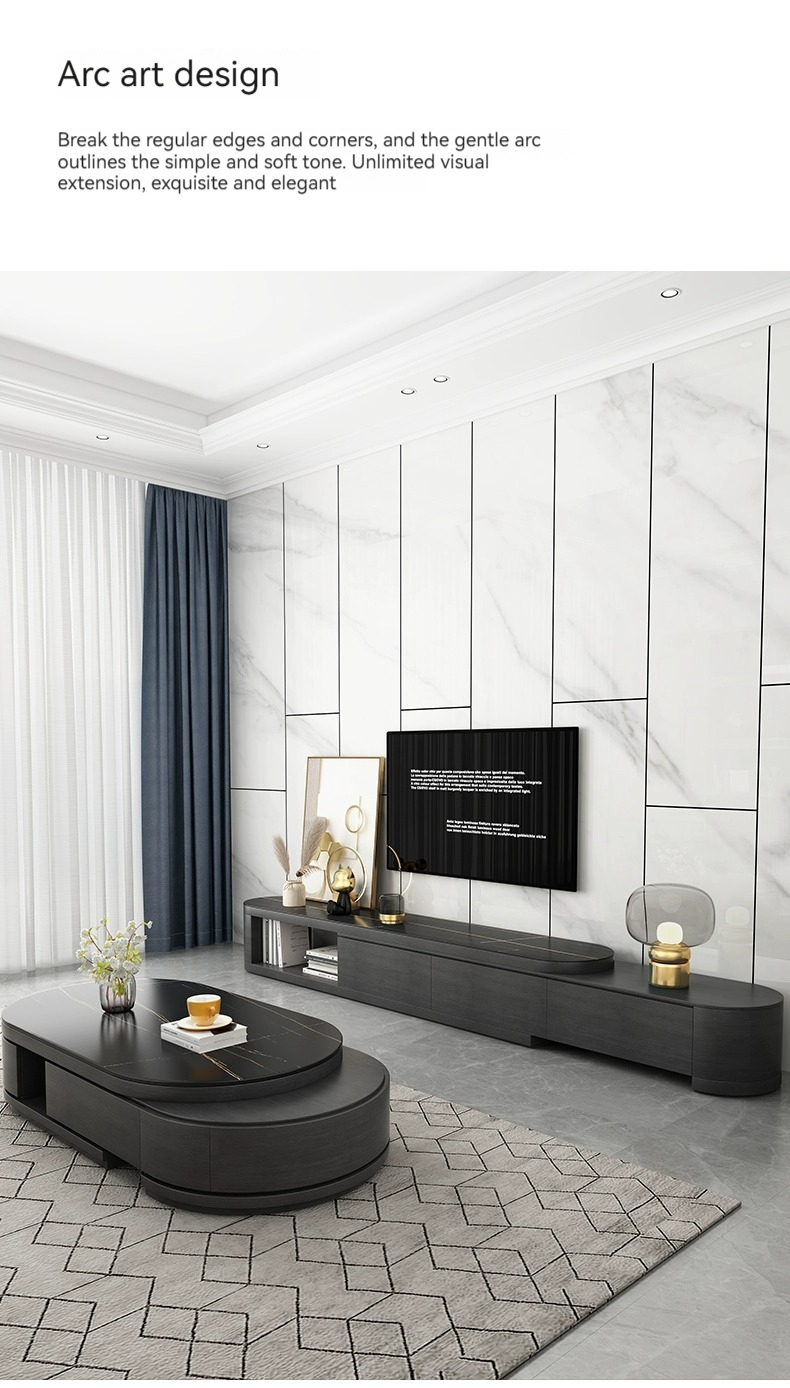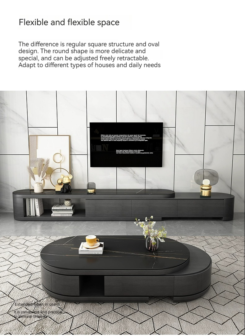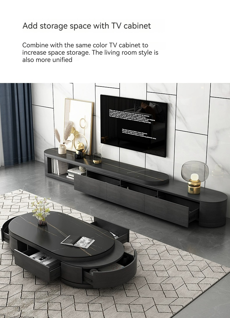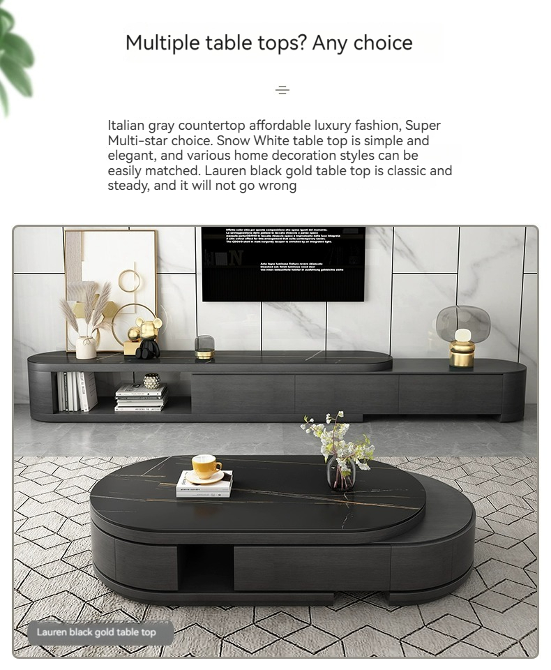 [Black] table+cab:【 Lauren Black gold 】Telescopic coffee table + TV cabinet