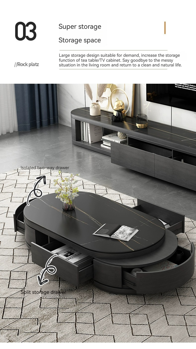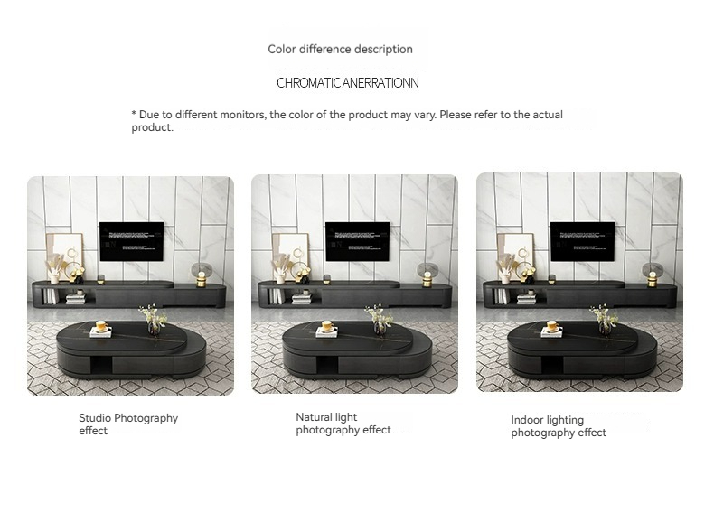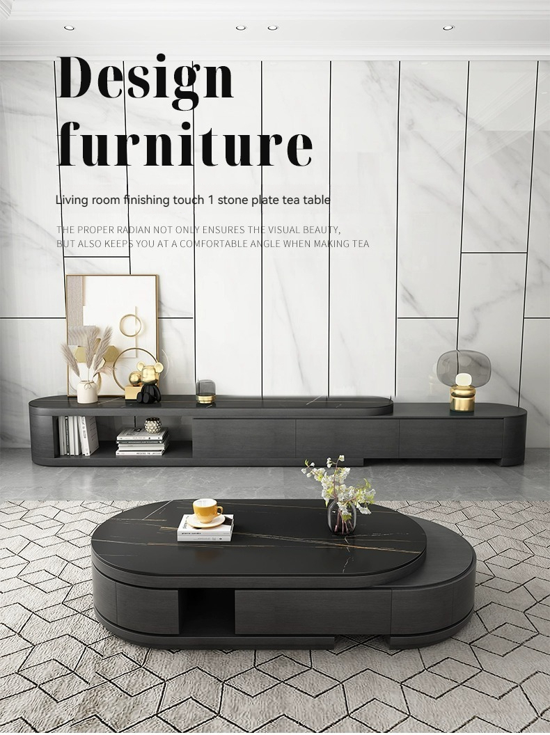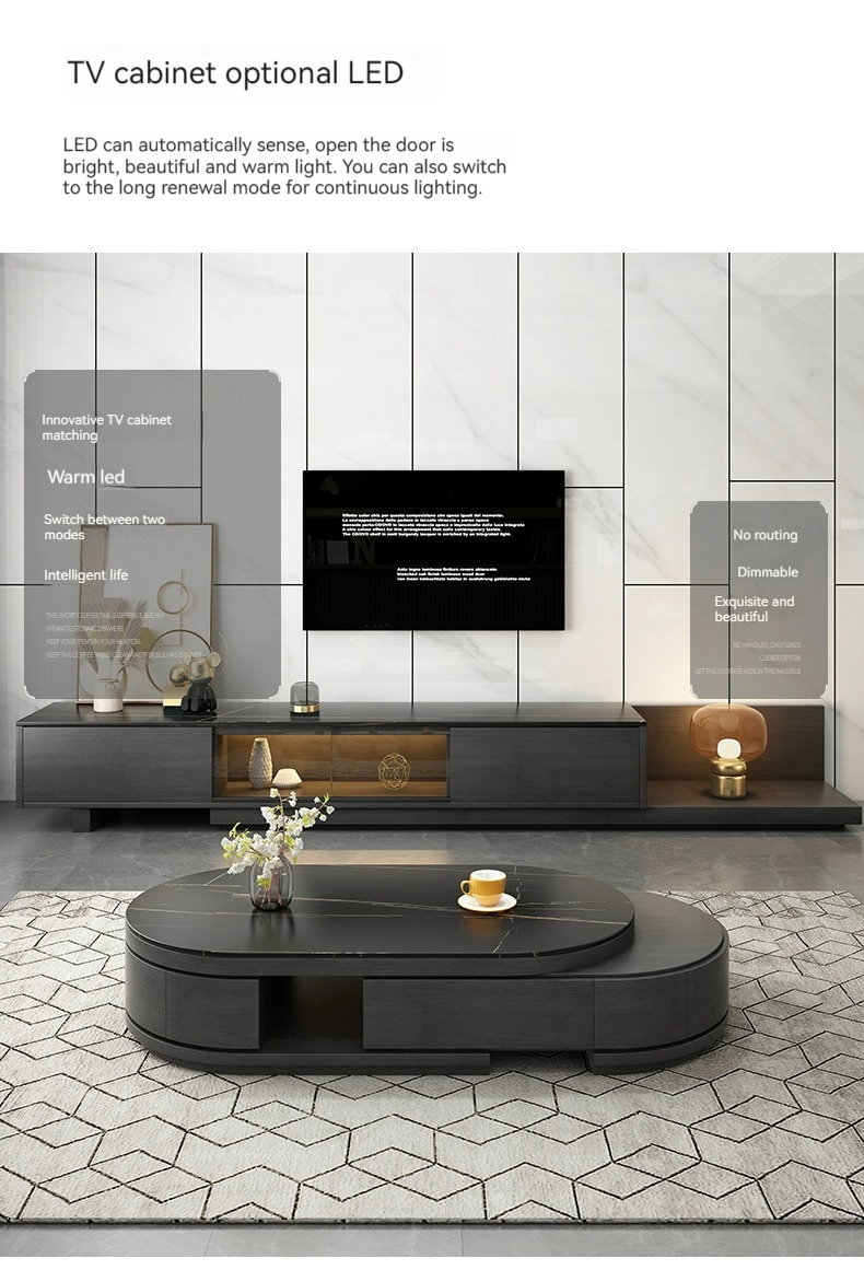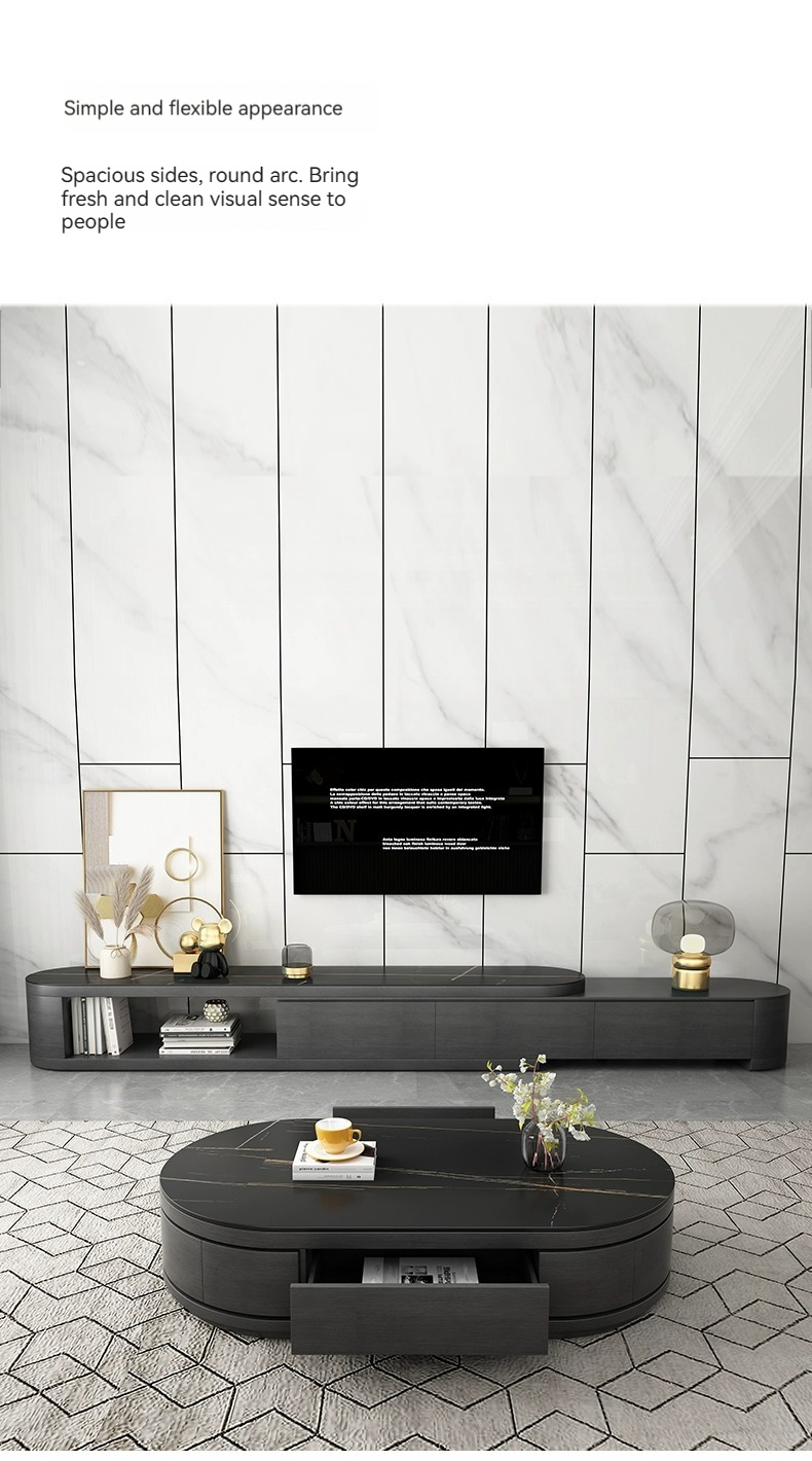 [Black] table+cab:【 Lauren Black gold 】Telescopic coffee table + TV cabinet