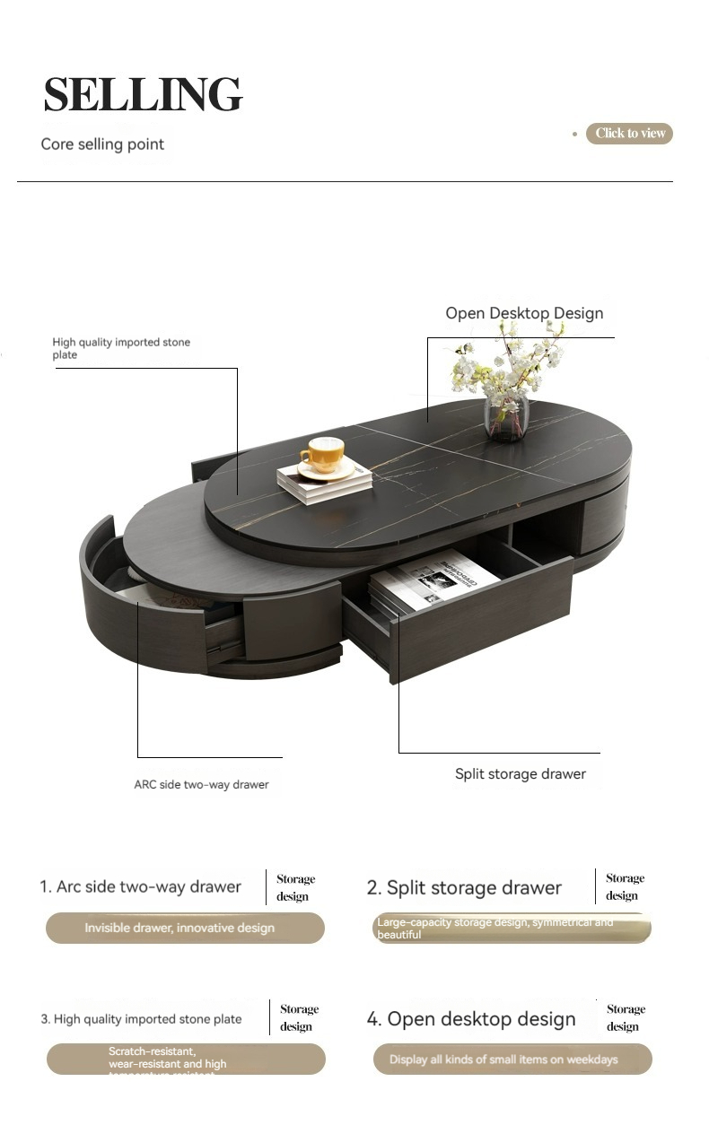 [Black gold] table:【 Lauren Black gold 】 telescopic coffee table
