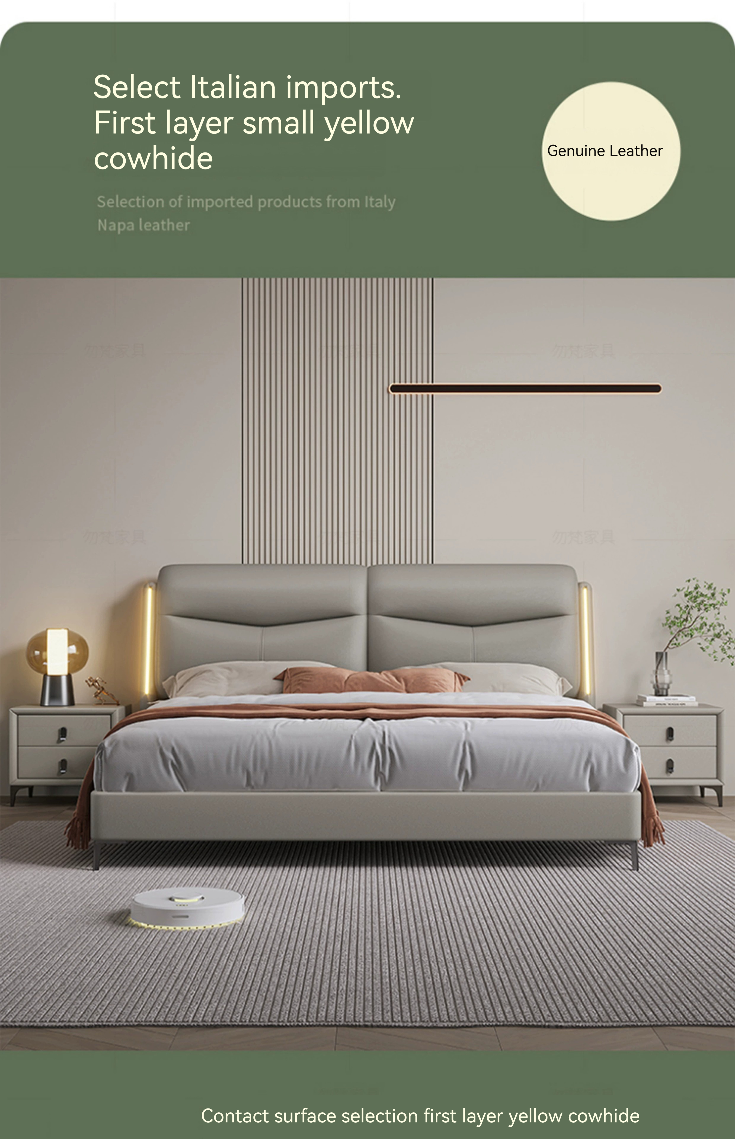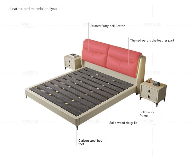 [Pre-order]  WM genuine leather bed, modern and minimalist new ecological cowhide bed, master bedroom, high-end and grand, light luxury soft bag, full edge double bed-Smart-Living [Pre-order]  WM genuine leather bed, modern and minimalist new ecological cowhide bed, master bedroom, high-end and grand, light luxury soft bag, full edge double bed-Smart-Living
