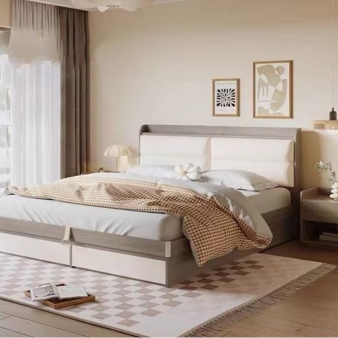 [ Pre Order ]  Wooden Moonlight Bed Modern Simple Tatami High Box Storage Bed Storage Small -Smart-Living