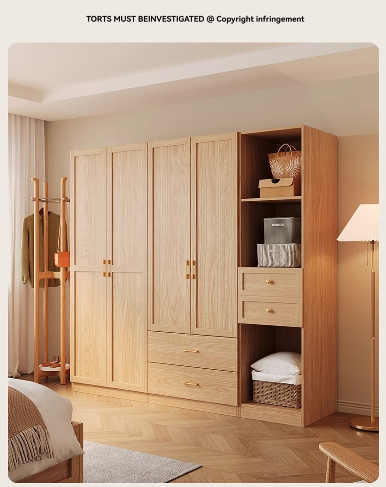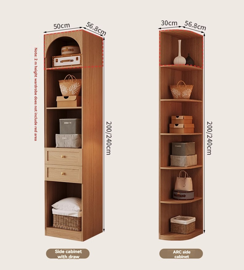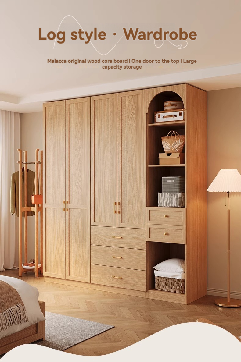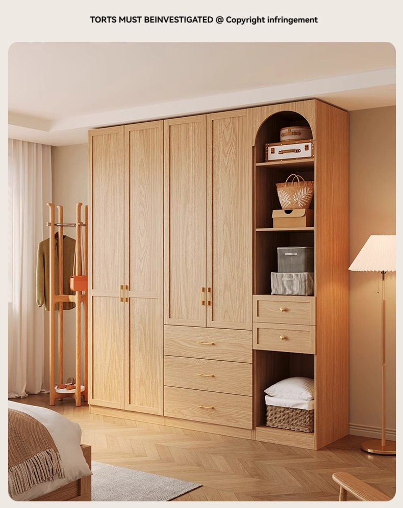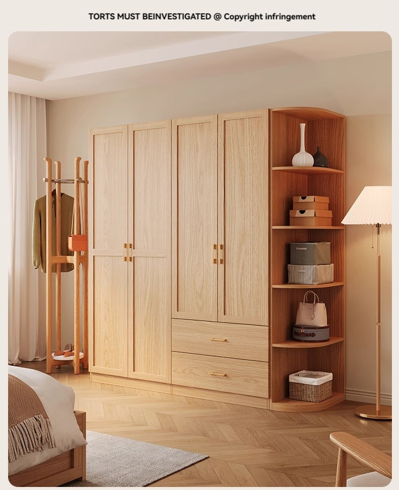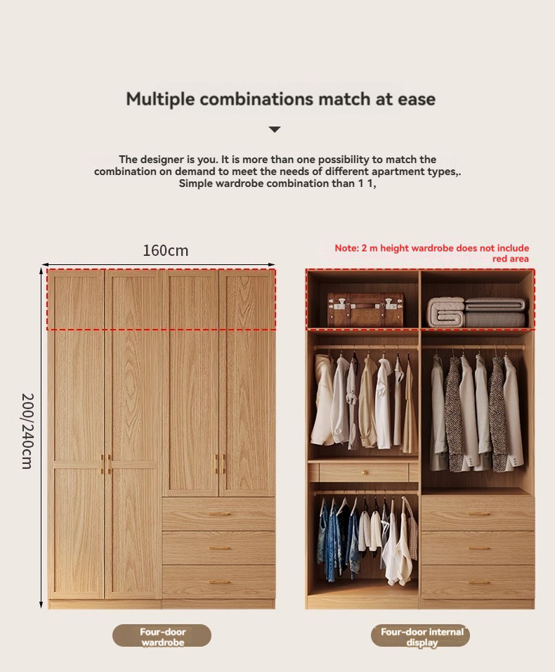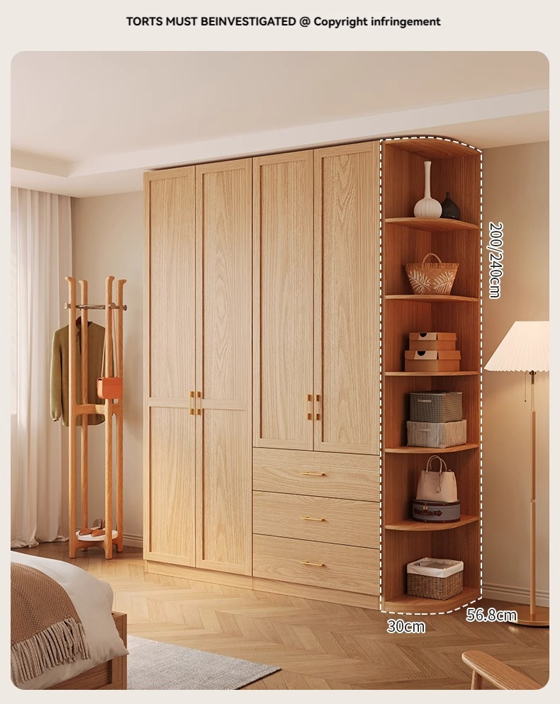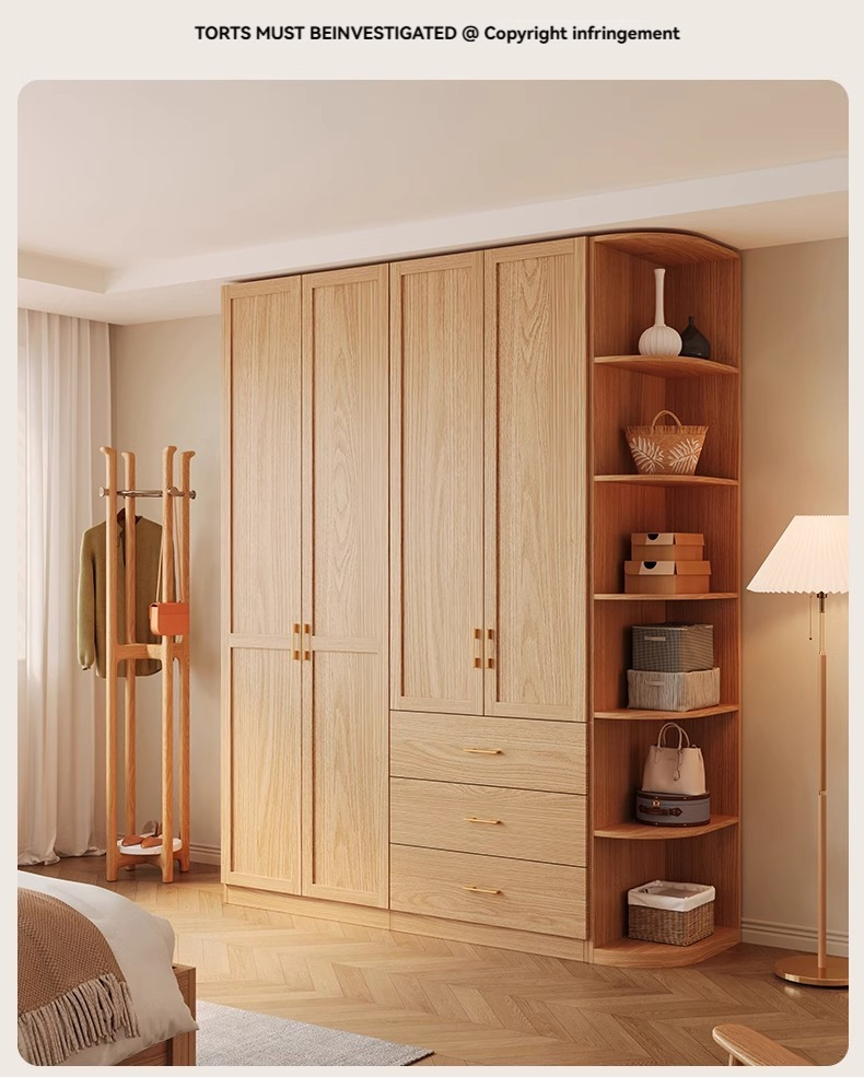 【 2-meter-high/18MM solid wood core board 】 Four door wardrobe+curved edge cabinet
