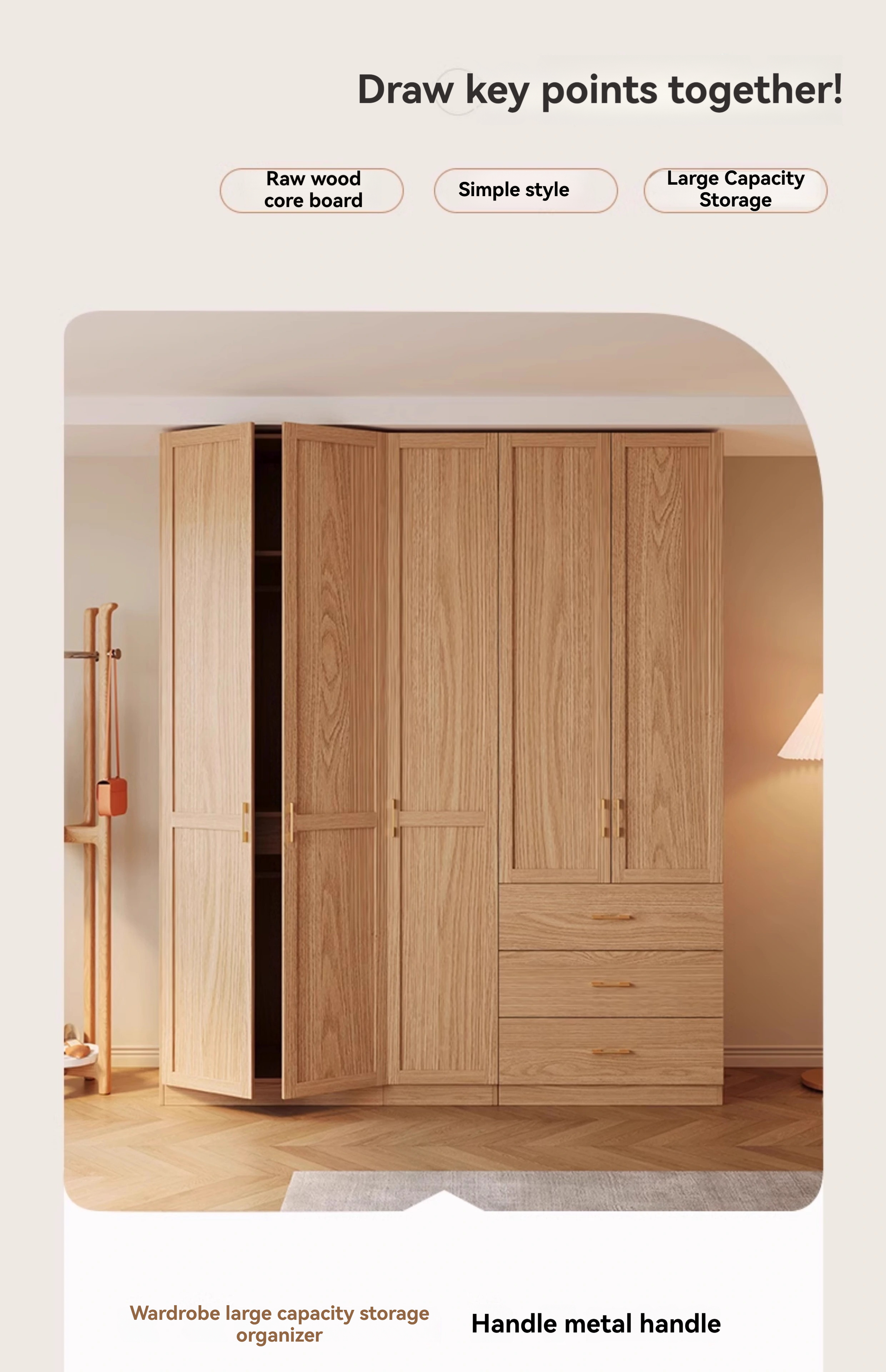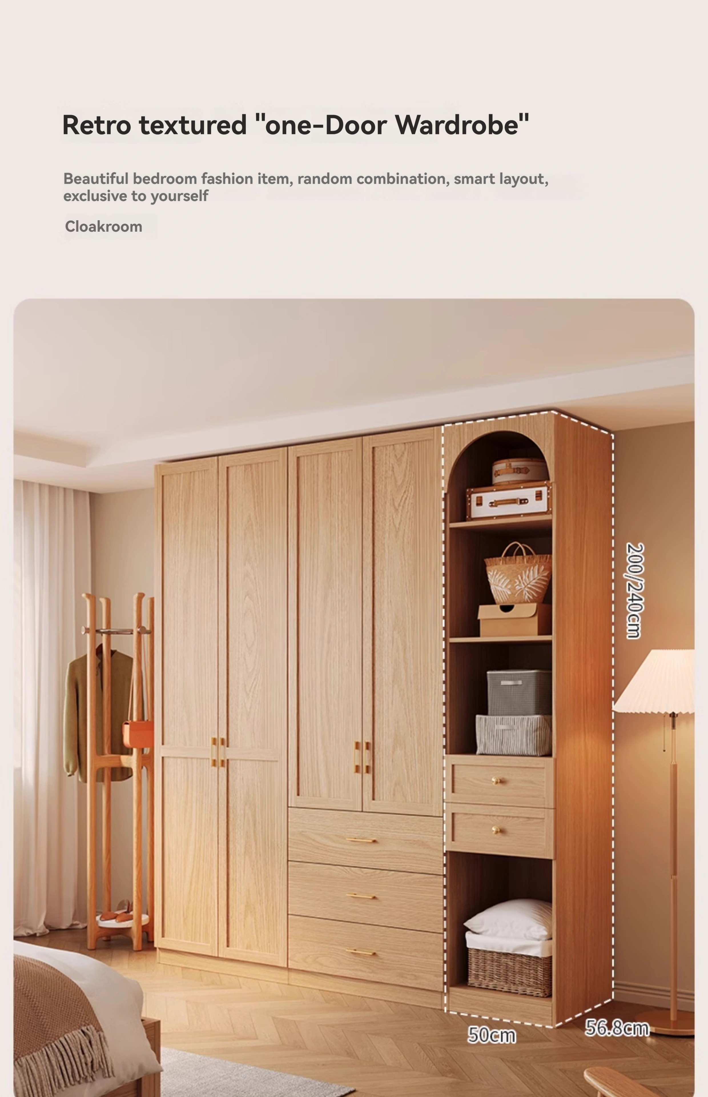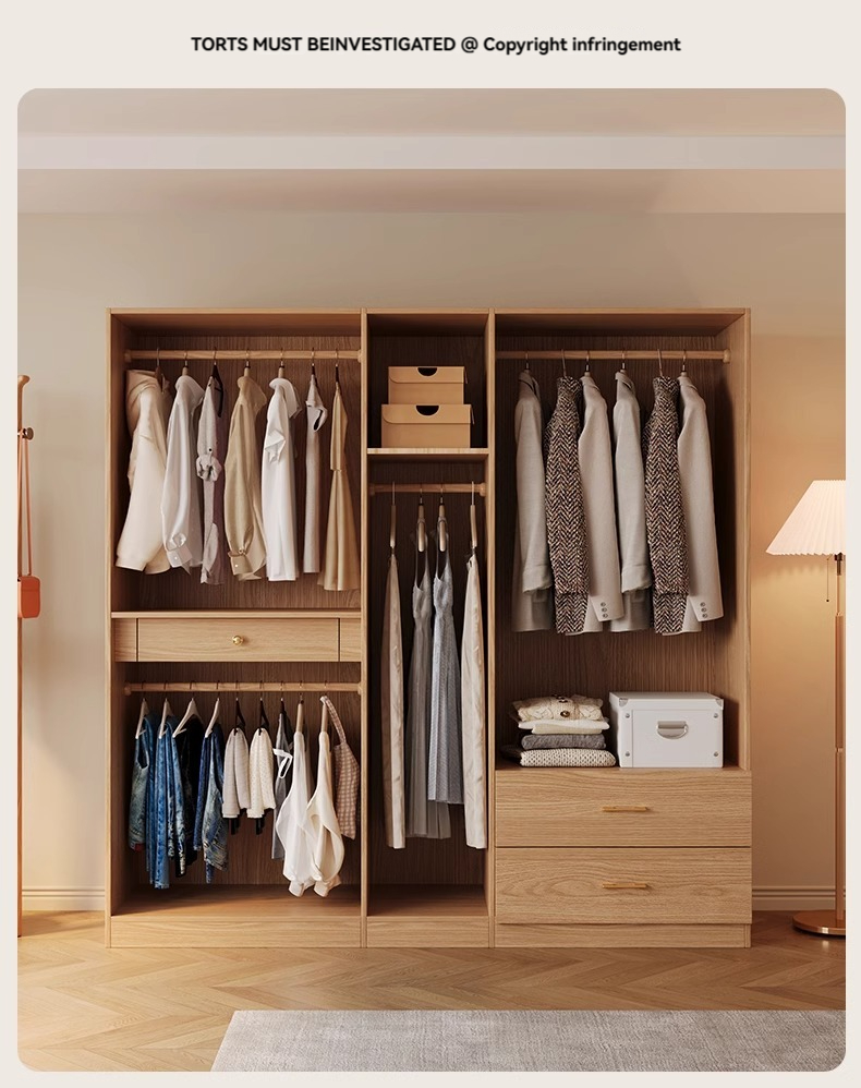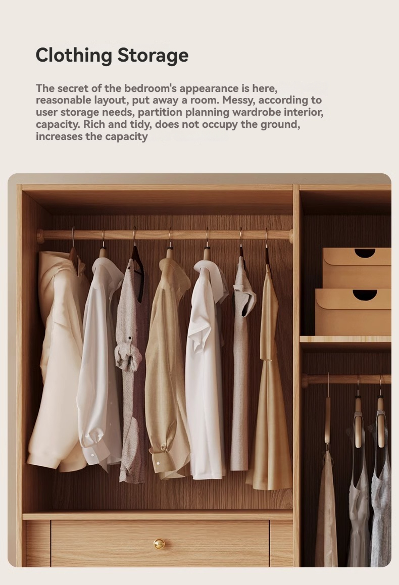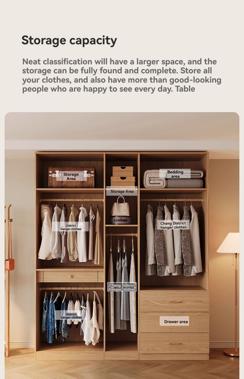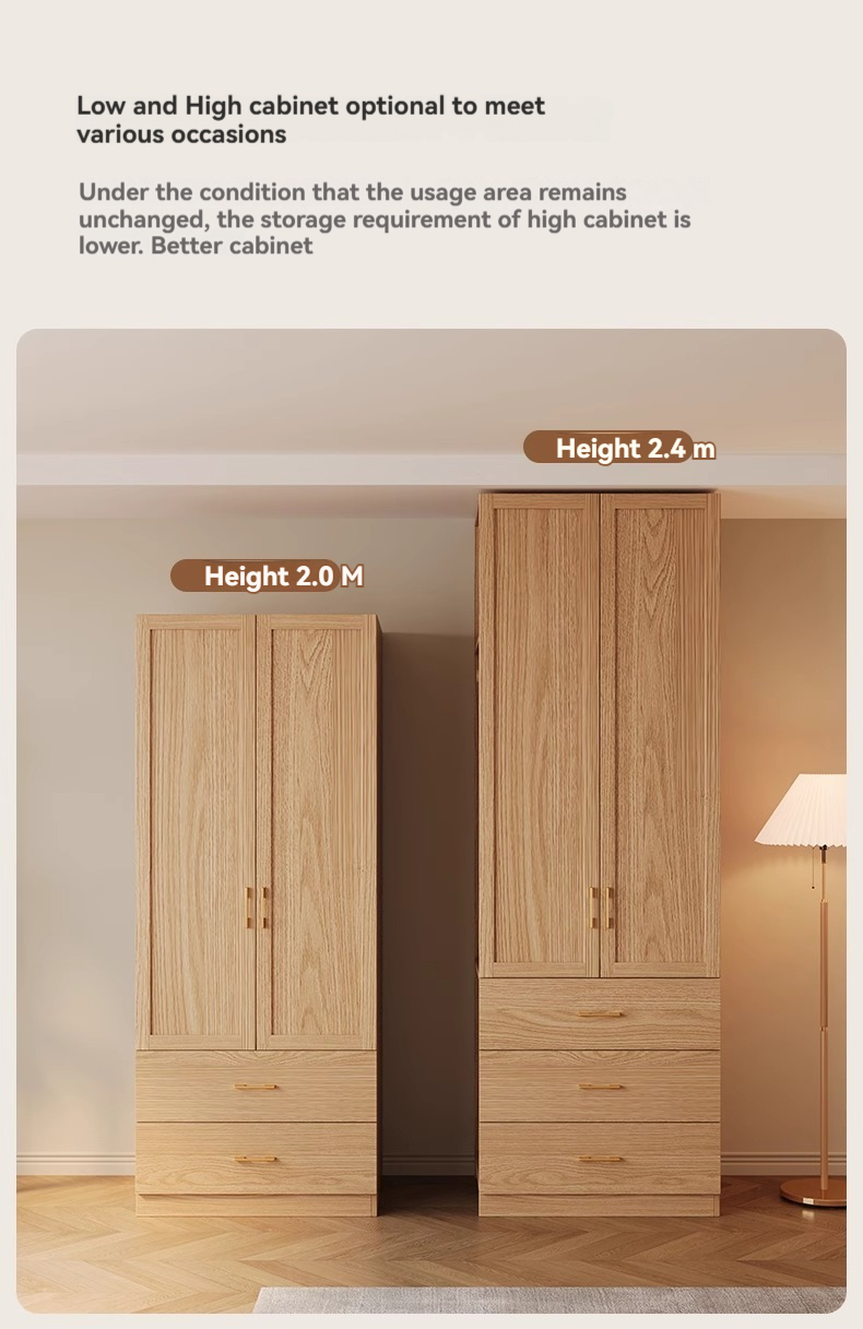 【 2-meter-high/18MM solid wood core board 】 Four door wardrobe+curved edge cabinet