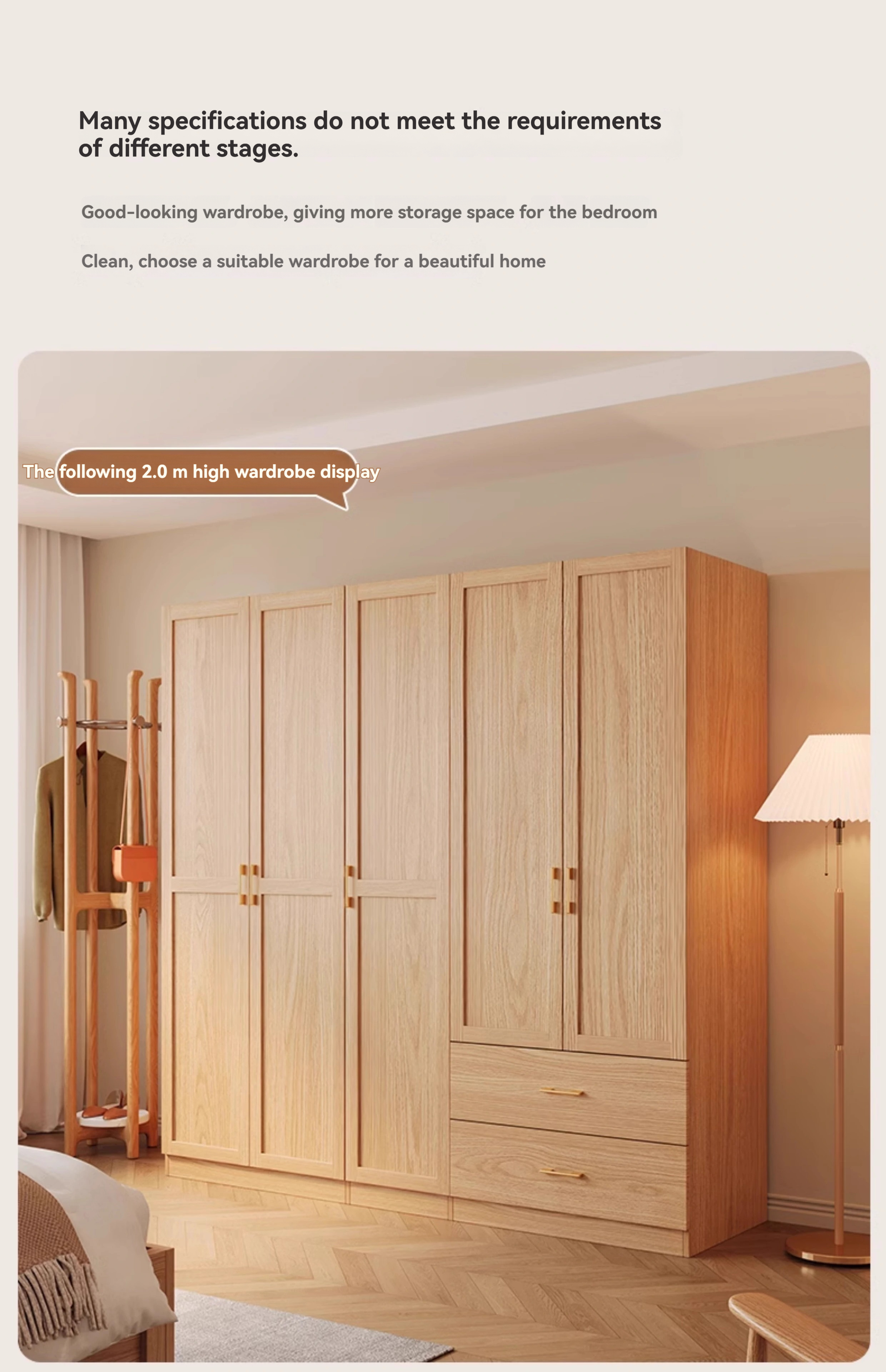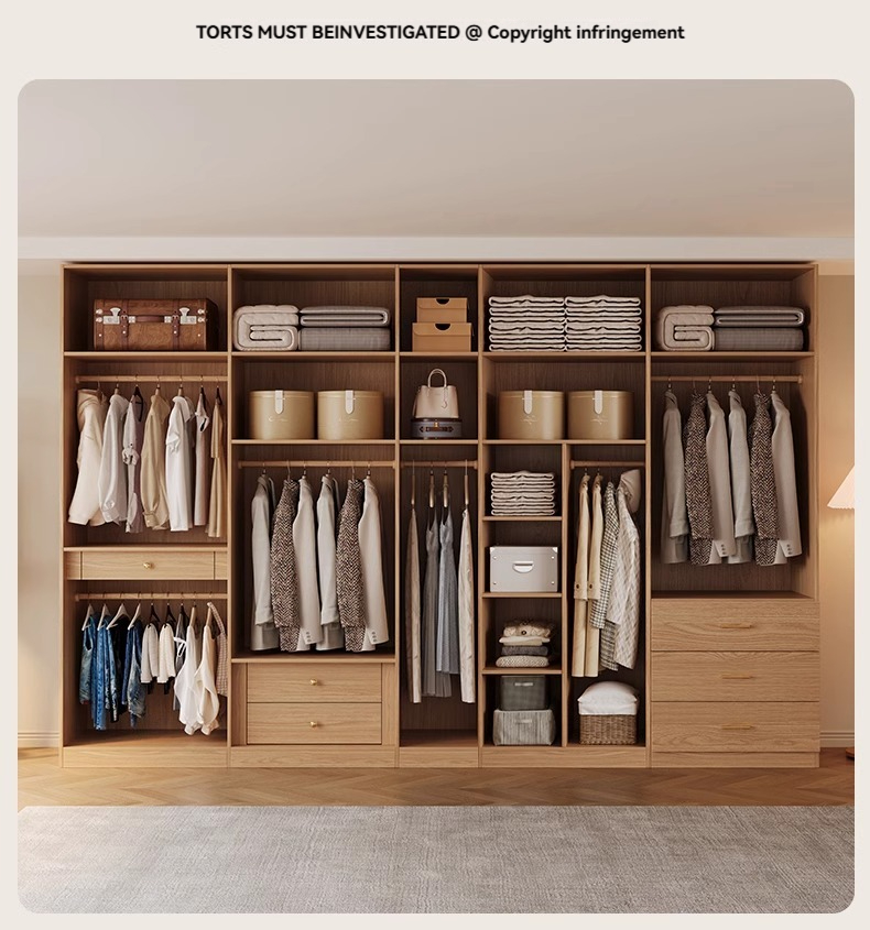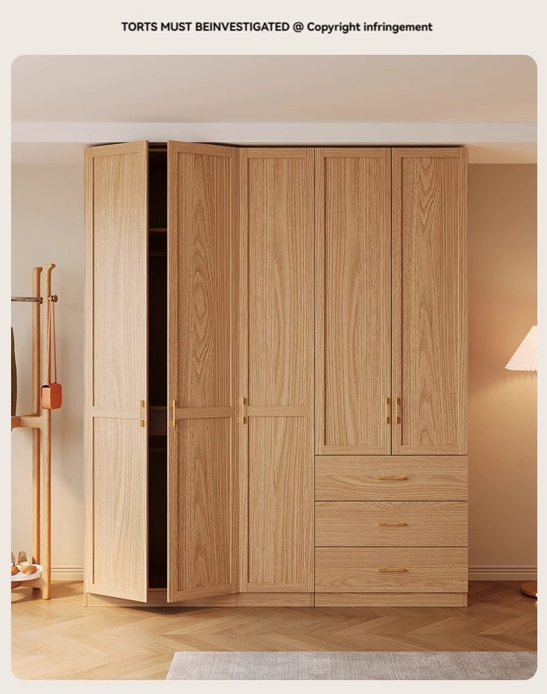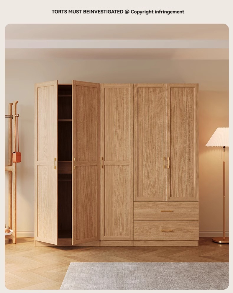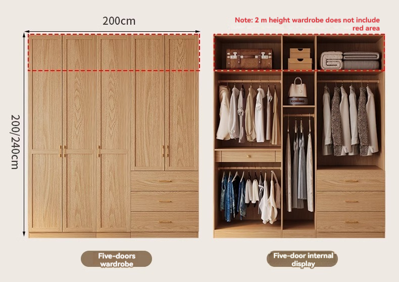 2-meter-high/18MM solid wood core board] five door wardrobe+cabinet with pull-out edge
