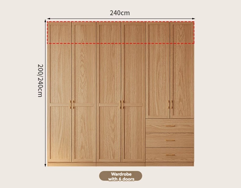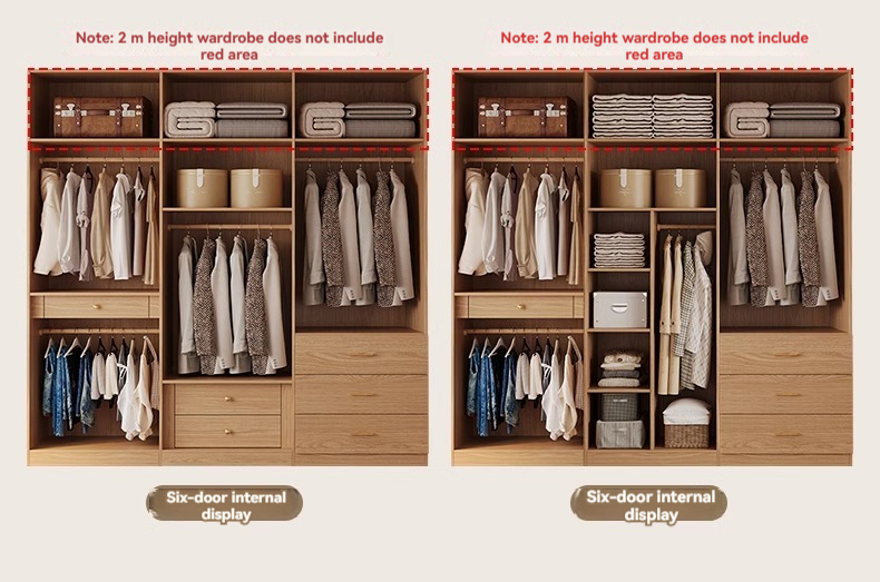 【 2-meter-high/18MM solid wood core board 】 Six door wardrobe+cabinet with edge extraction