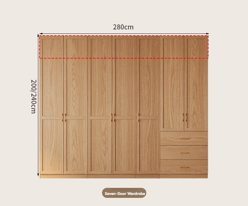 2.4-meter-high/18MM solid wood core board seven door wardrobe