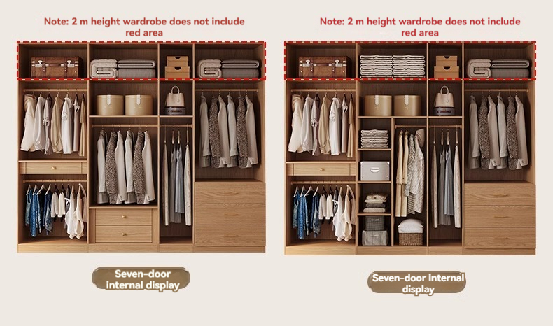 【 2-meter-high/18MM solid wood core board 】 Seven door wardrobe+cabinet with edge extraction
