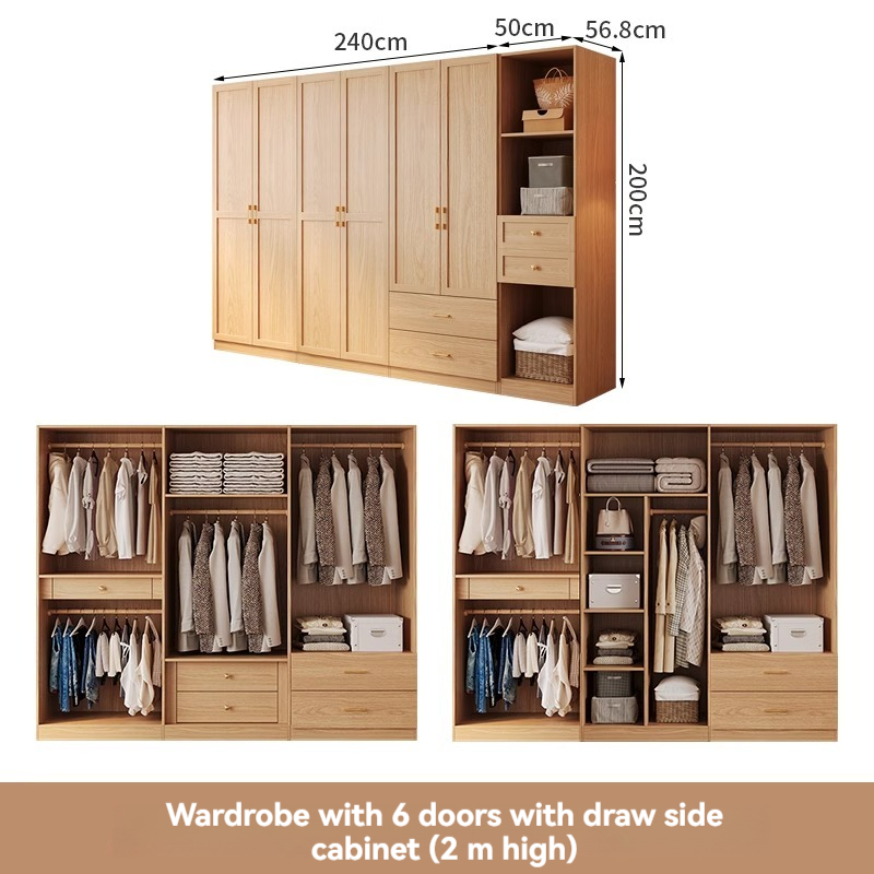 【 2-meter-high/18MM solid wood core board 】 Six door wardrobe+cabinet with edge extraction