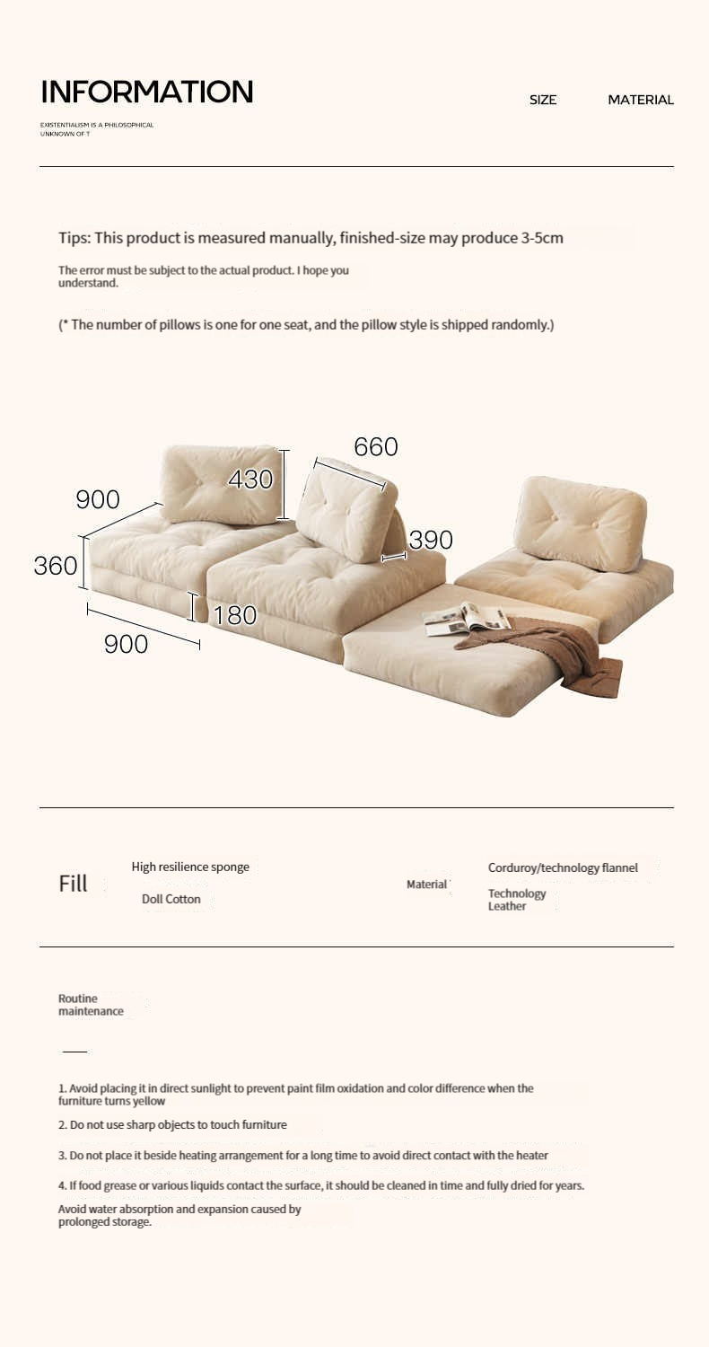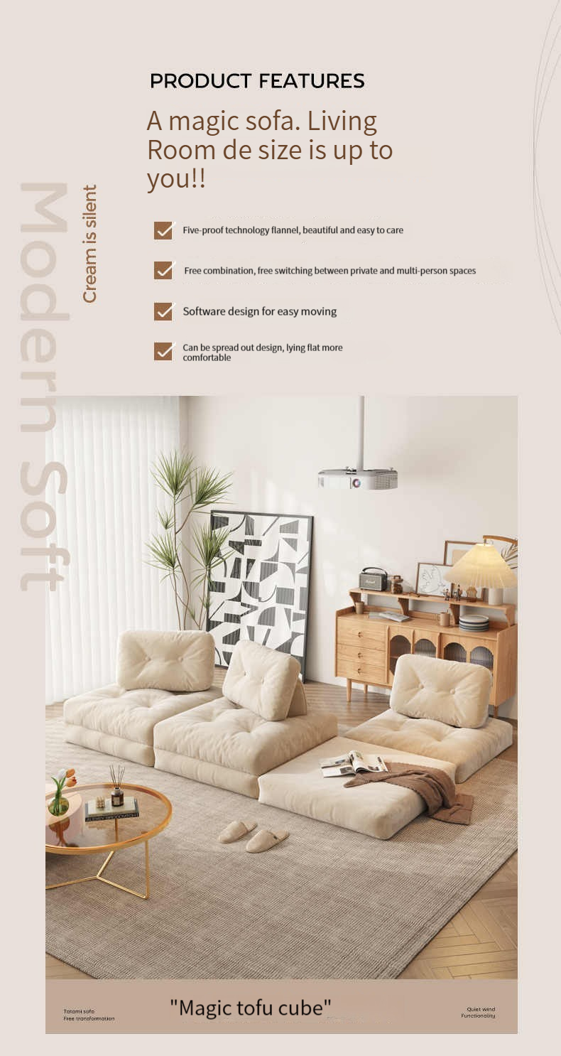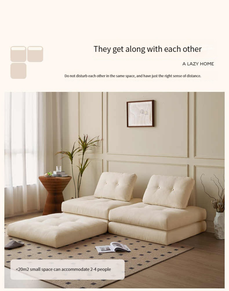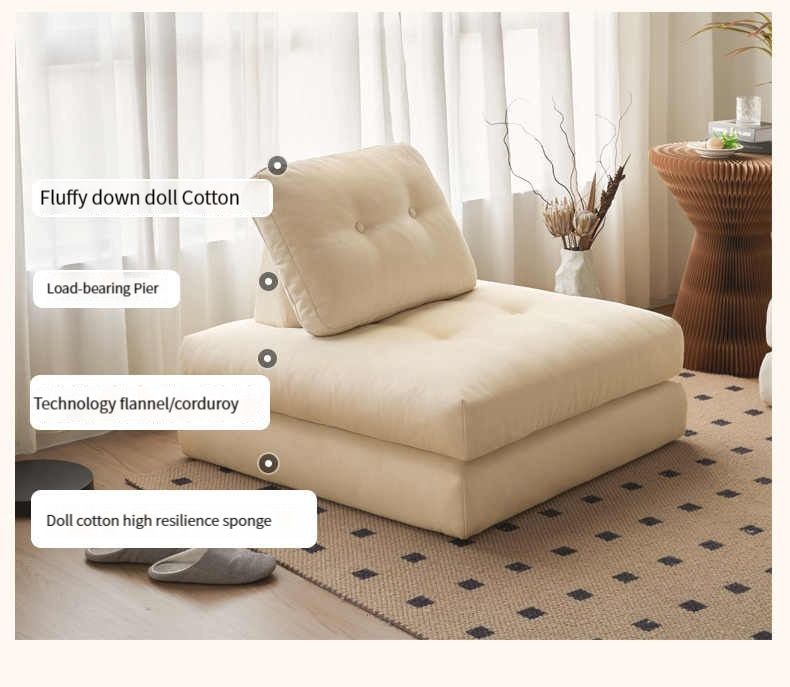 Introducing our Butter Tofu Block Lazy Cloth Sofa – a modern and simple addition to your living room, perfect for small houses. Crafted with technological velvet fabric, this sofa boasts a beautiful and easy-to-maintain design. The removable and washable lazy cloth adds convenience. With a free combination and expandable design, it adapts to your space effortlessly.