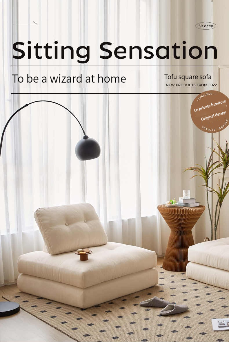 Butter Tofu Block Lazy Cloth Sofa Living Room Simple Small House Single Module Technology Cloth Sofa Removable and Washable-Smart-Living Butter Tofu Block Lazy Cloth Sofa Living Room Simple Small House Single Module Technology Cloth Sofa Removable and Washable-Smart-Living