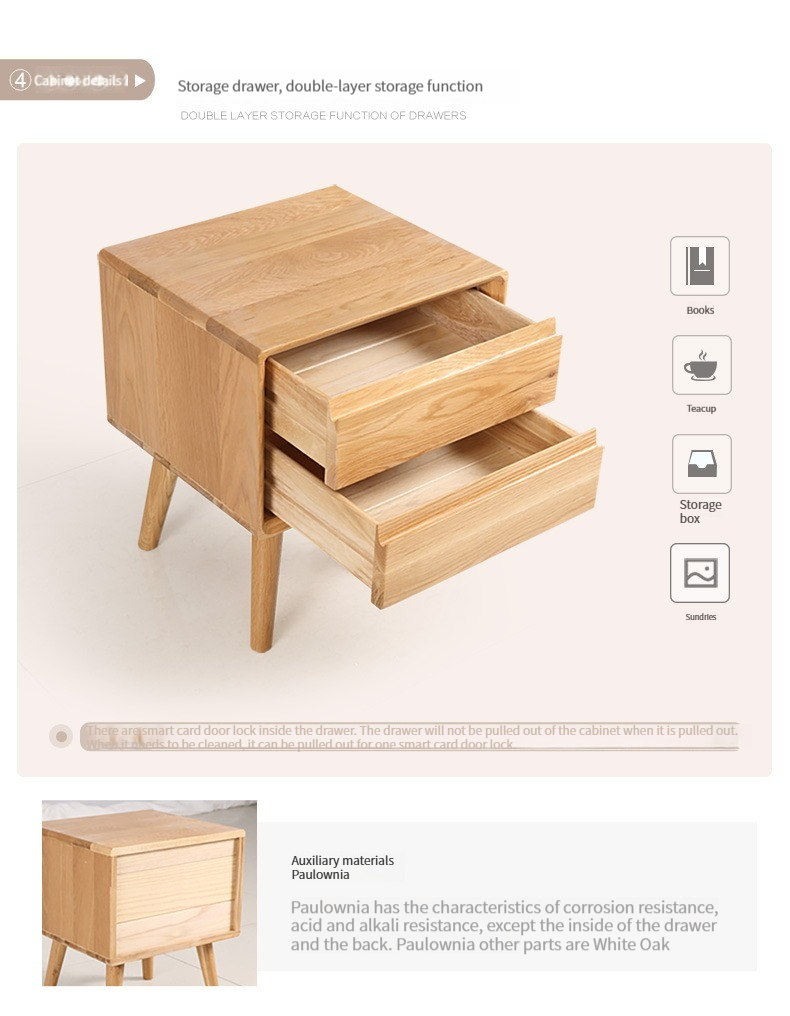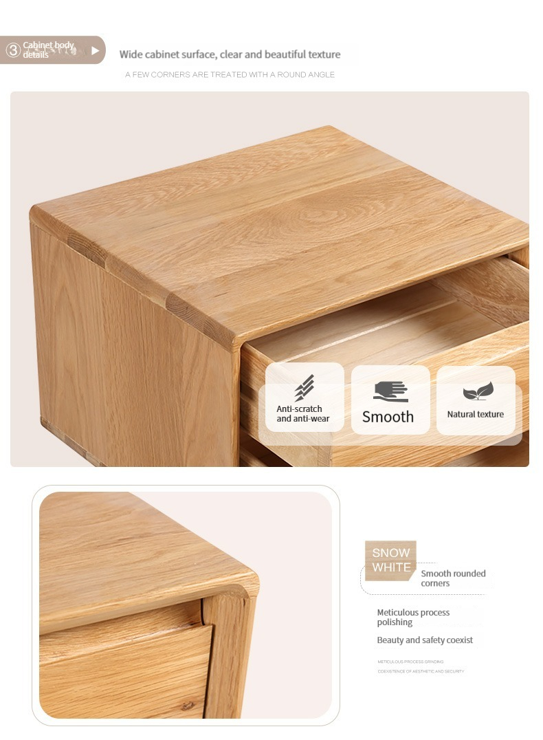 Warner's Nordic all-solid wood bedside table, simple Japanese style white wax wood drawer cabinet, bedroom storage cabinet, storage cabinet.