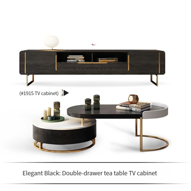 [Pre-order] Nordic Light Luxury Scalable Tea Table TV Cabinet Combination Multifunctional Living Room Furniture Modern Simple Oval Tea Table-Smart-Living