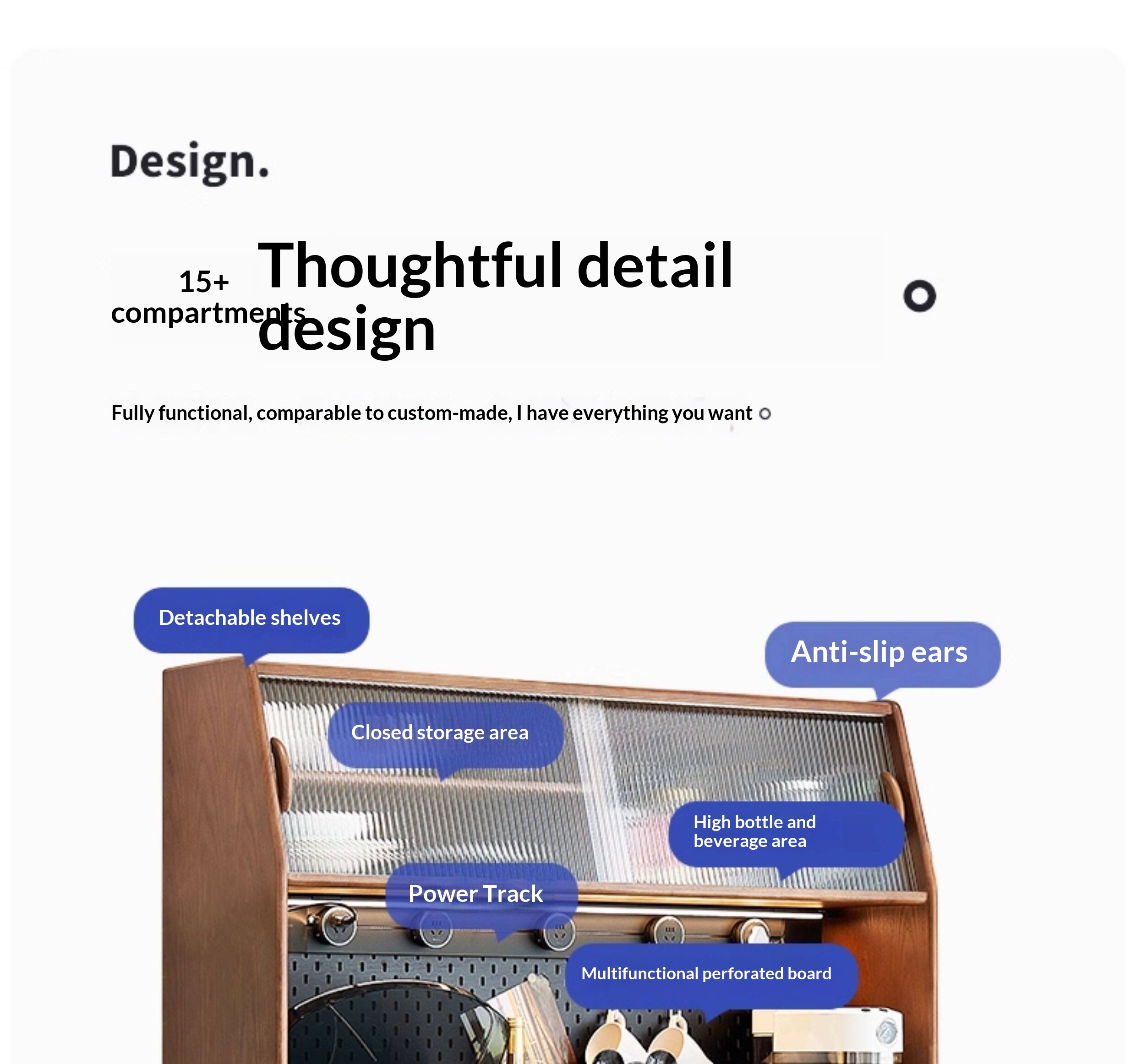 Upper and lower tier sideboard ash wood cabinet, electric sliding rail integrated storage cabinet