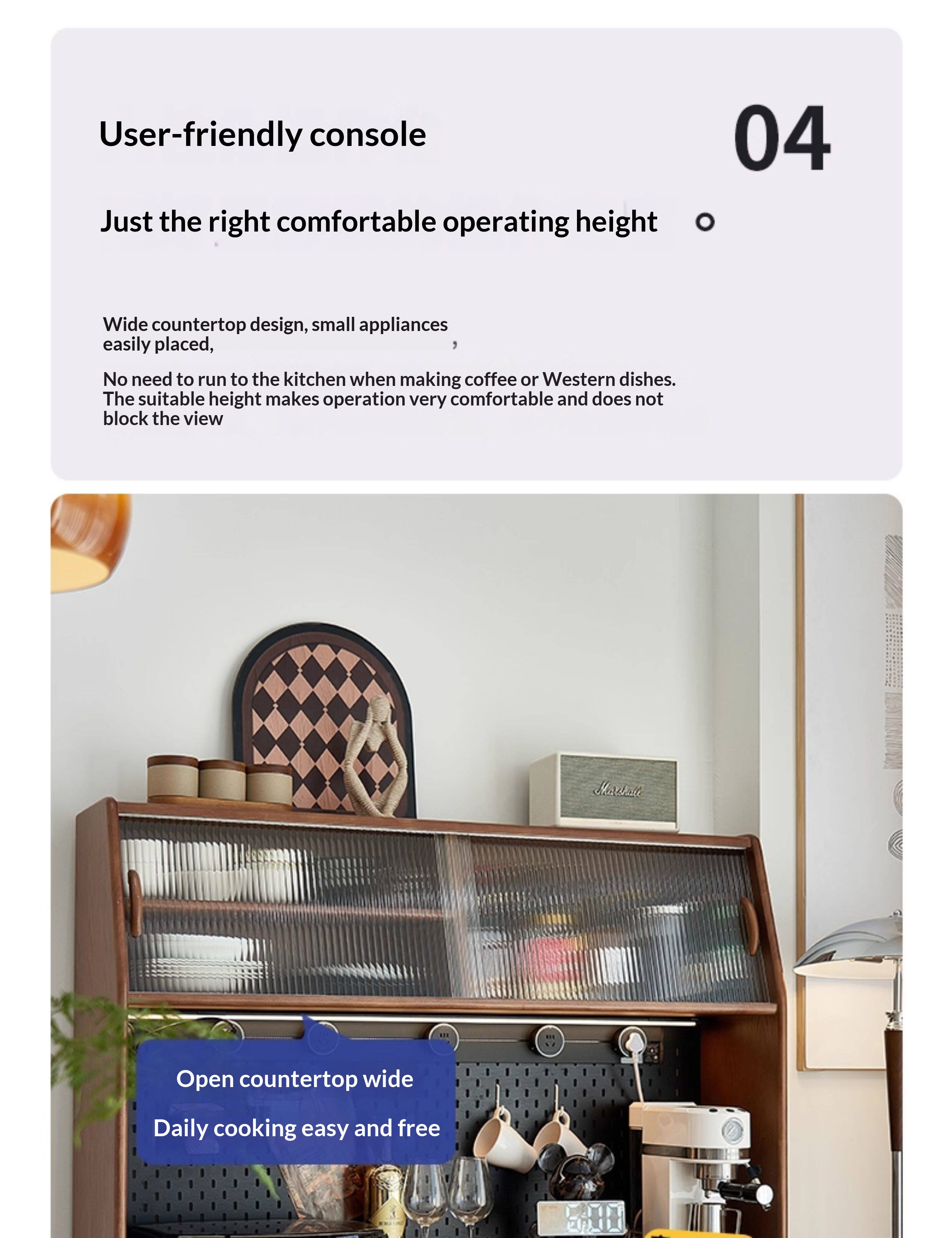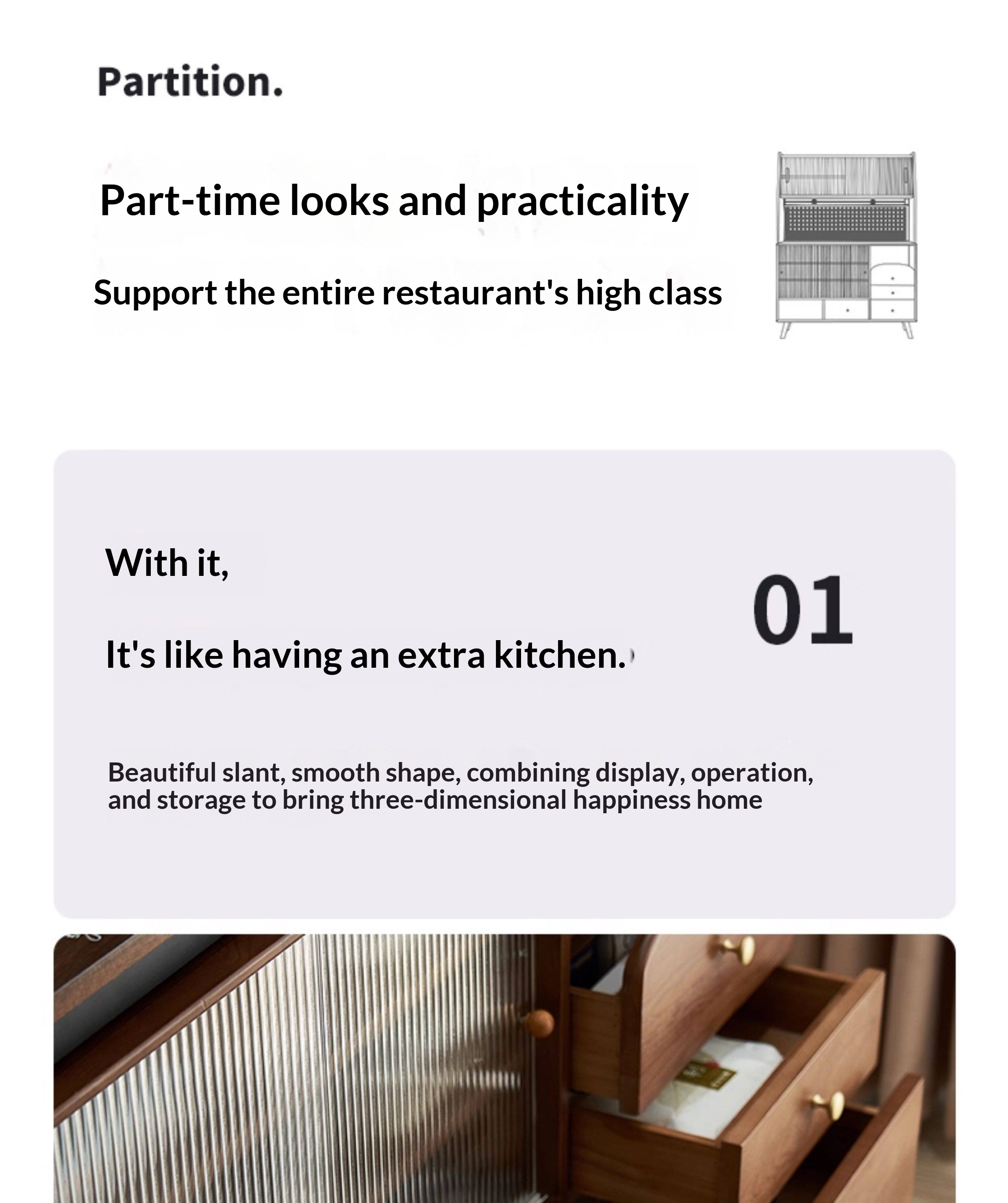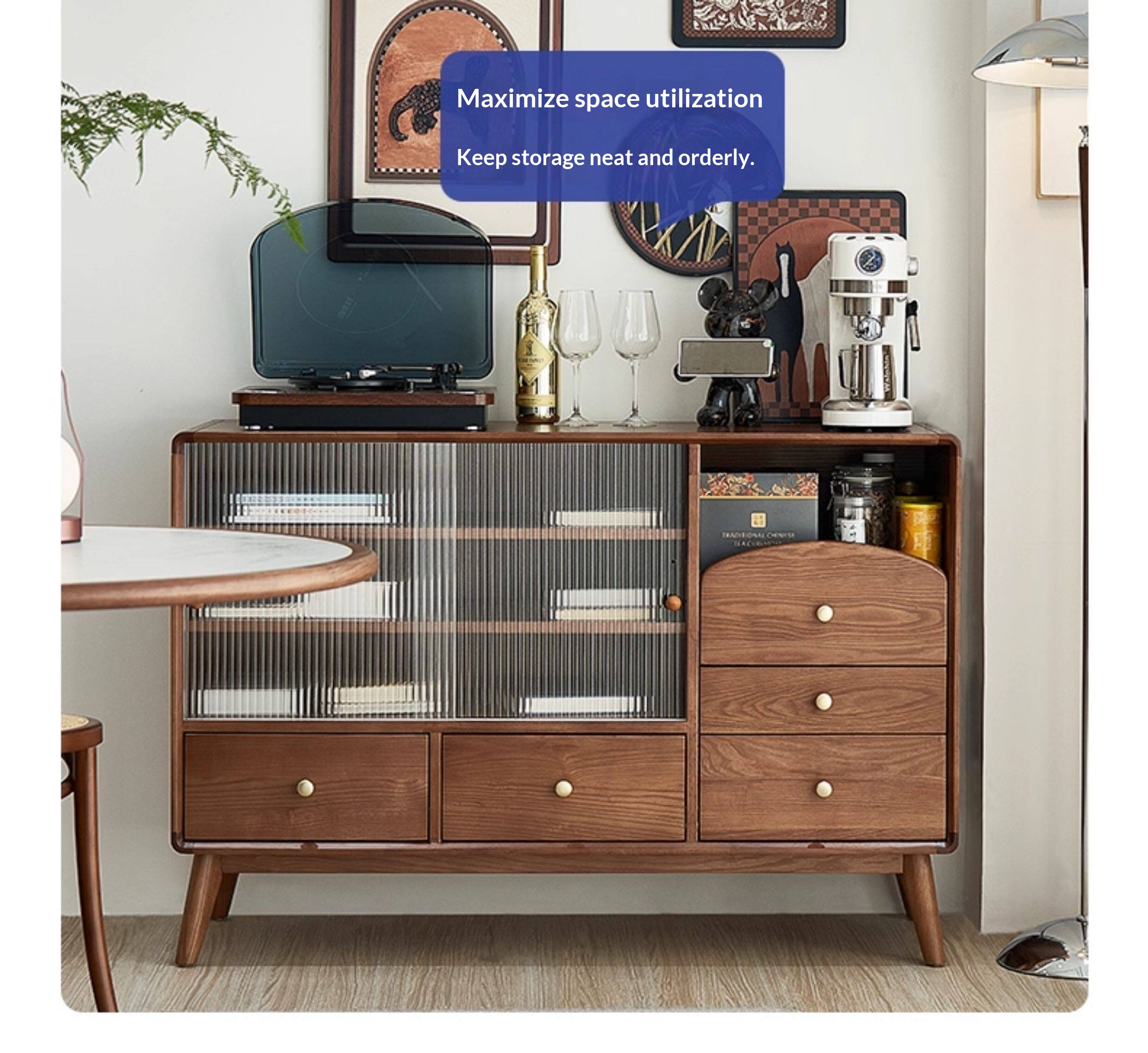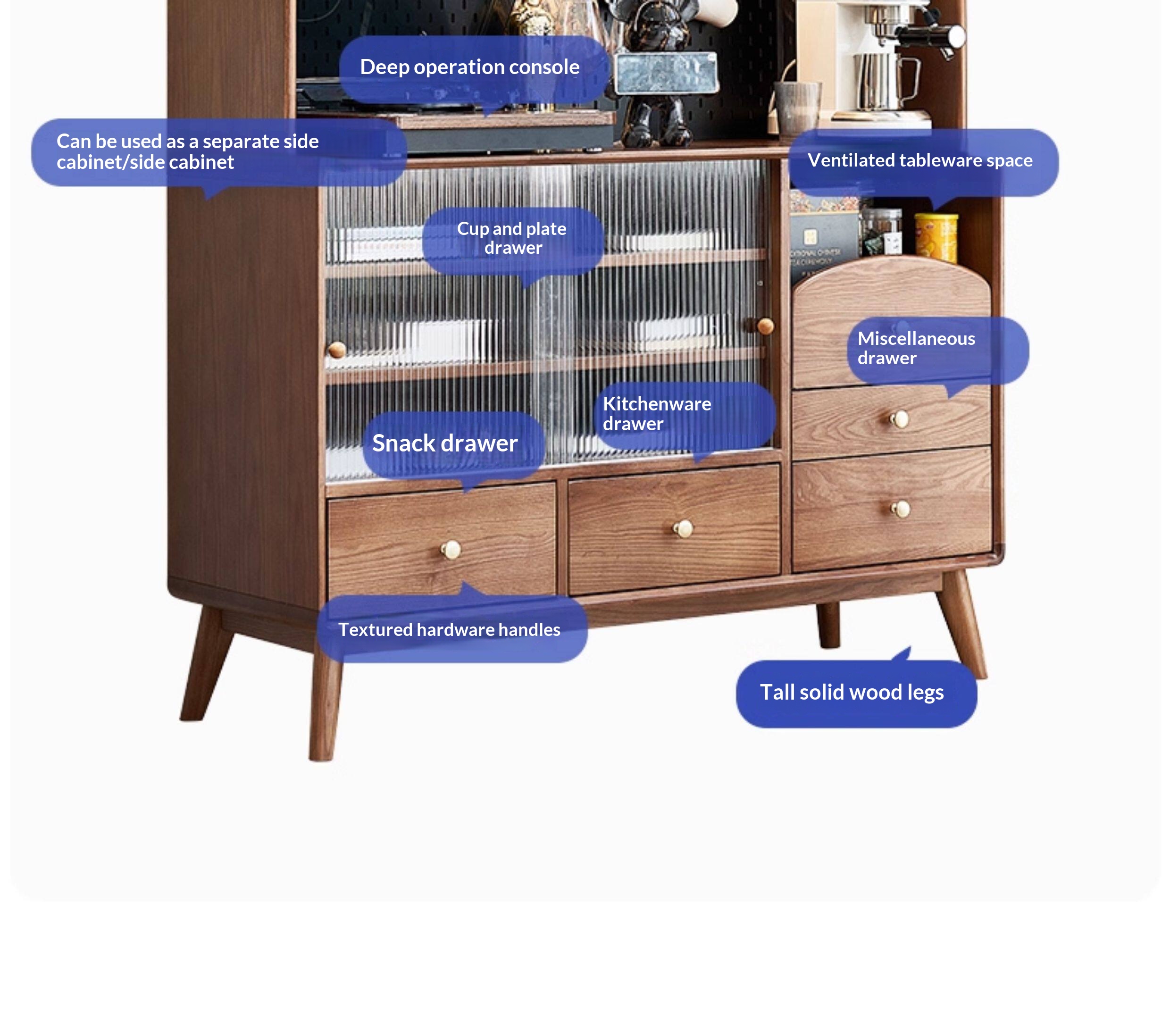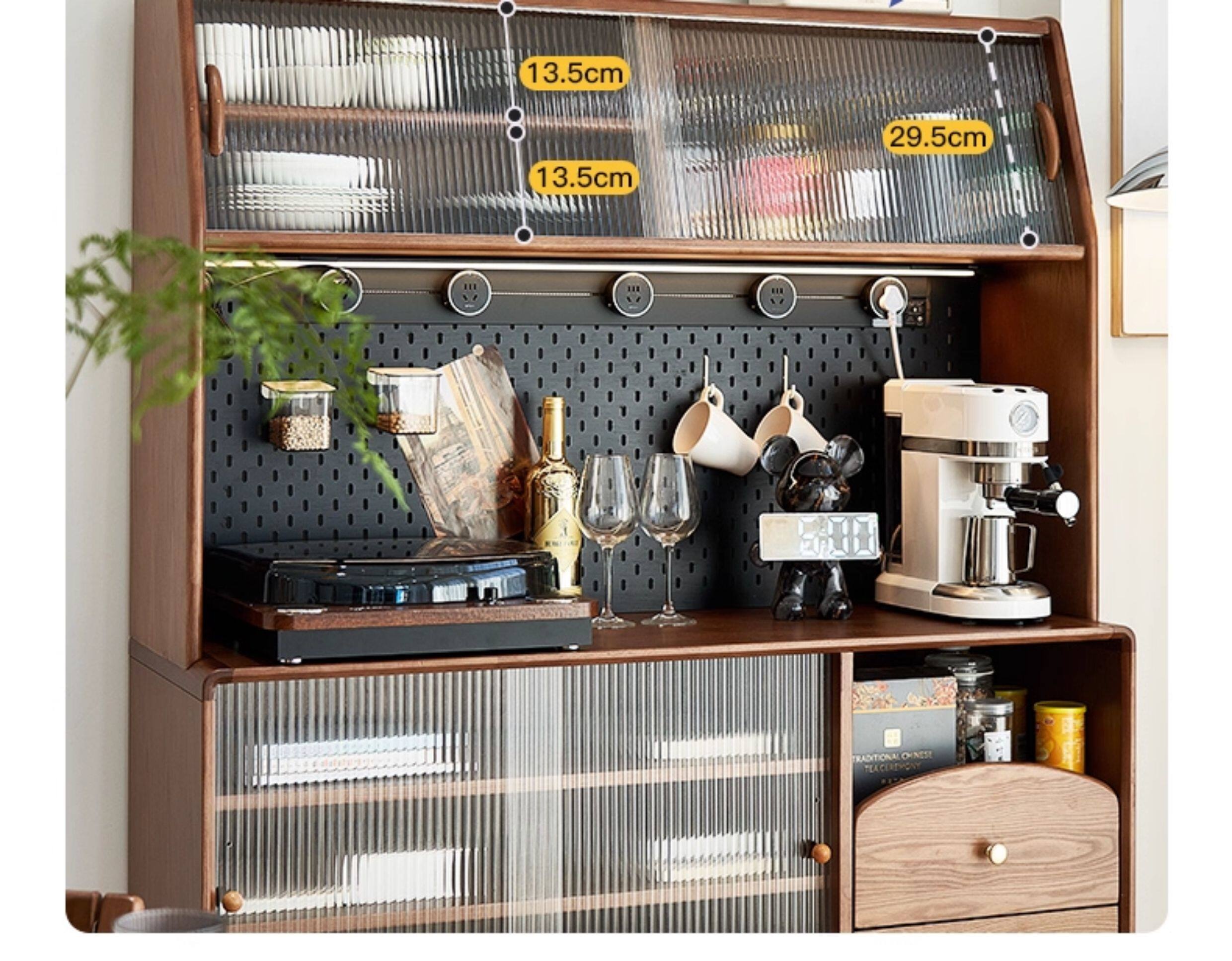BSYR-ULS-01[PRE-ORDER] Upper and lower tier sideboard ash wood cabinet, electric sliding rail integrated storage cabinet