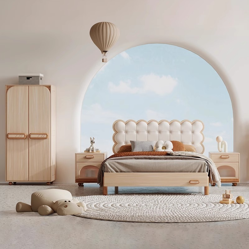 Combination suite cream style children's bed boys and girls bubble bed solid wood internet famous princess bed simple modern bedside cupboard-Smart-Living