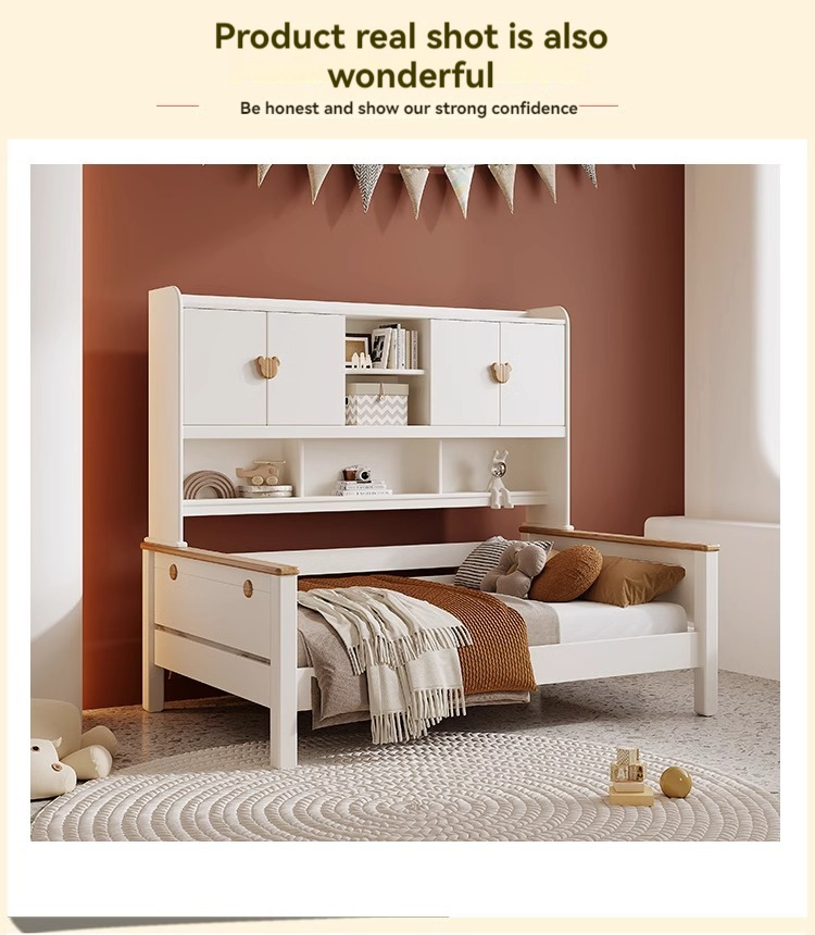 Cream style children's solid wood wardrobe bed white 1.2m 1.35m 1.5m men's and girls' bedroom bookshelf combination bed