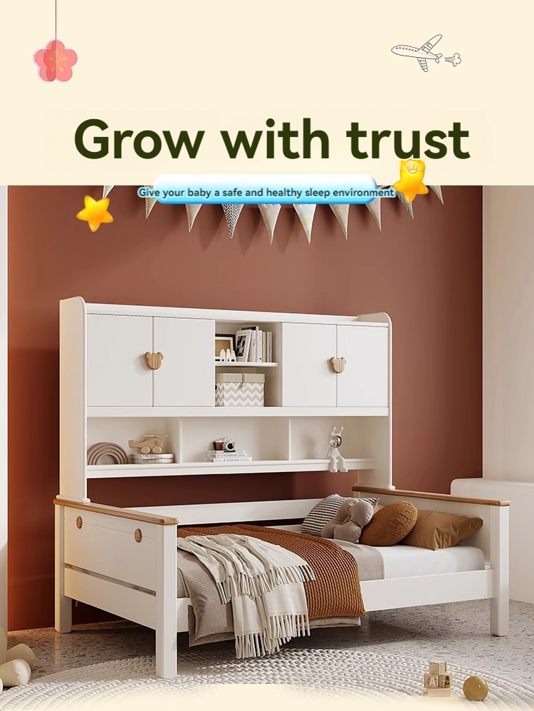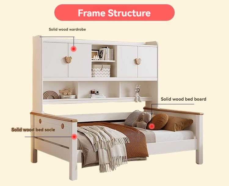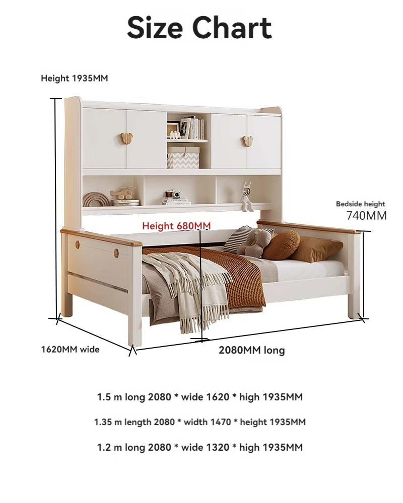 Cream style children's solid wood wardrobe bed white 1.2m 1.35m 1.5m men's and girls' bedroom bookshelf combination bed-Smart-Living Cream style children's solid wood wardrobe bed white 1.2m 1.35m 1.5m men's and girls' bedroom bookshelf combination bed-Smart-Living