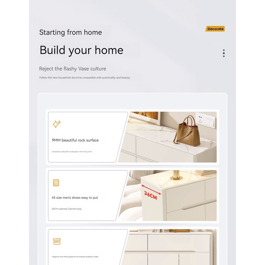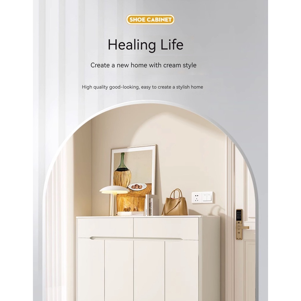 [Pre-order] Cream Shoe and Console Cabinet Integrated with Drawers - Rock Slab Top and Baked Coating-Smart-Living [Pre-order] Cream Shoe and Console Cabinet Integrated with Drawers - Rock Slab Top and Baked Coating-Smart-Living
