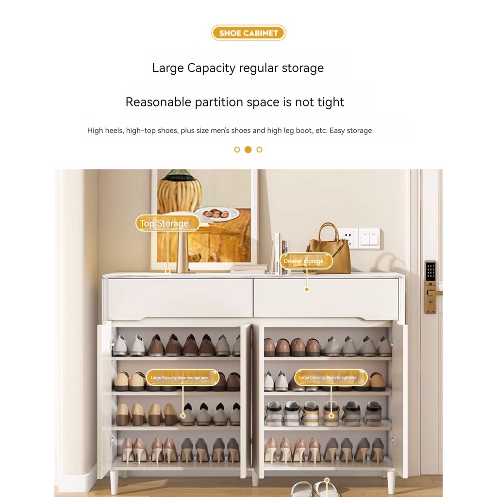 [Pre-order] Cream Shoe and Console Cabinet Integrated with Drawers - Rock Slab Top and Baked Coating-Smart-Living