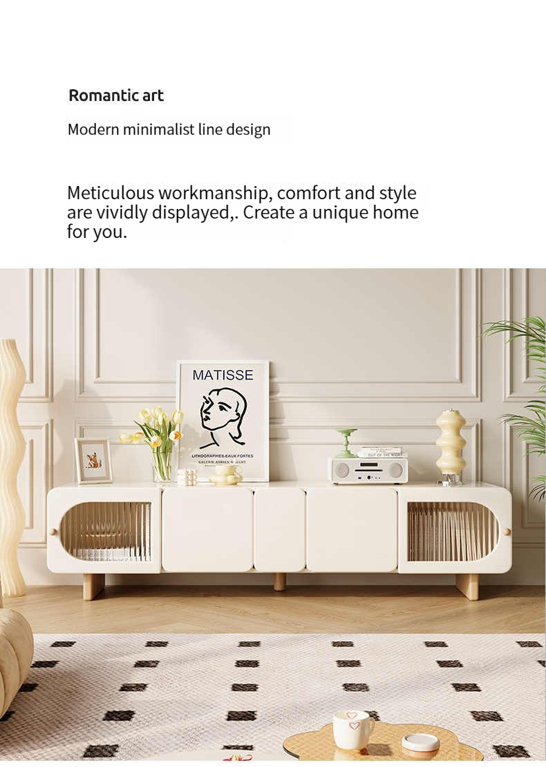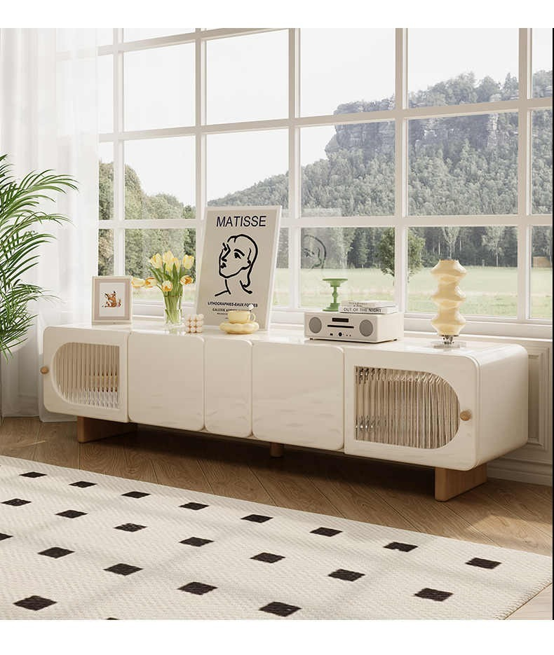 Cream style TV cabinet, living room, small household type, new storage, high-end feel, natural wood coffee table, TV cabinet combination