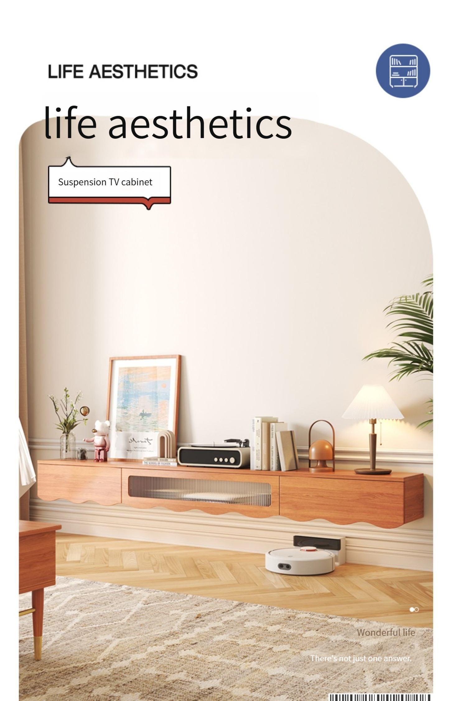 Japanese style wall-mounted floating TV cabinet wall cabinet small apartment modern minimalist living room home tea table TV cabinet combination.