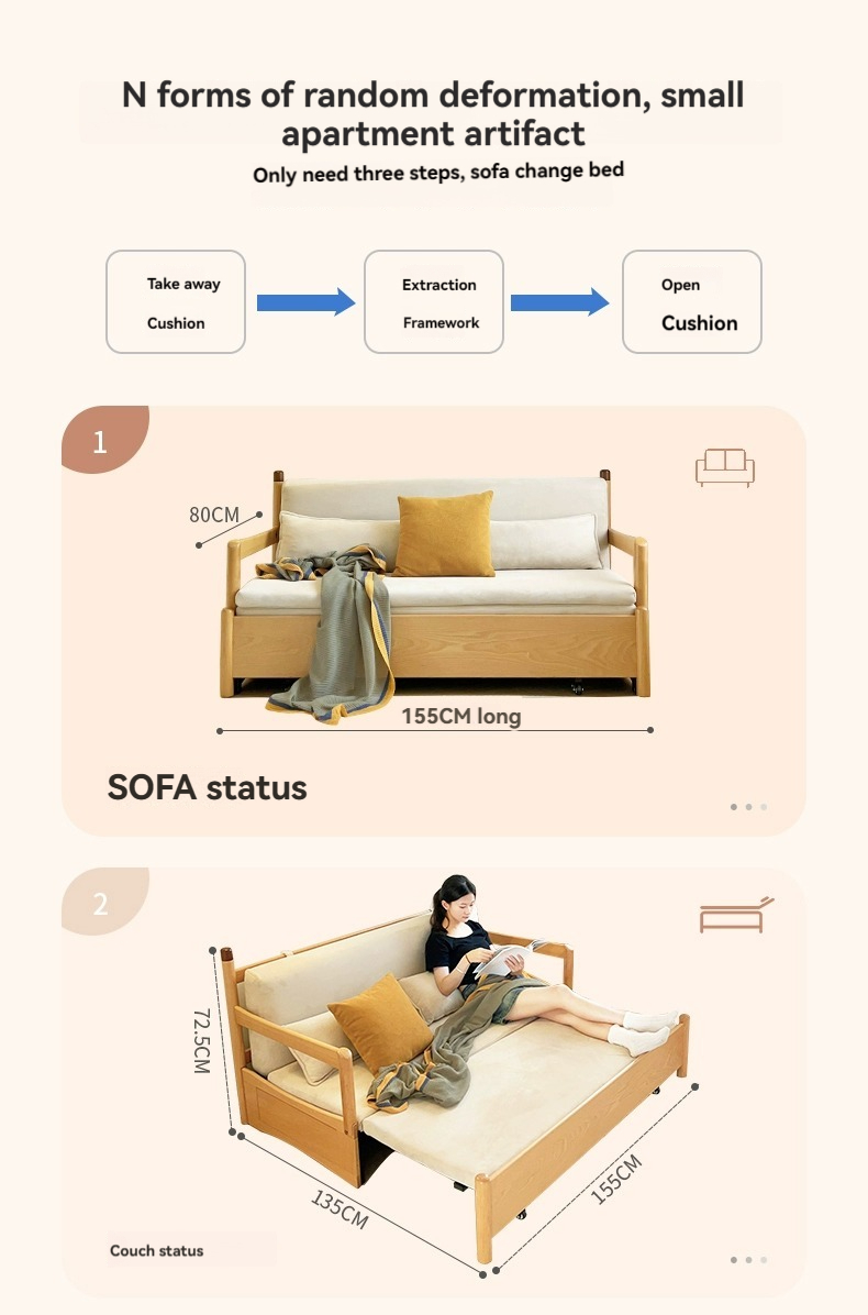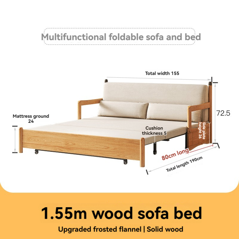 [Pre-order]  LEMAX solid wood sofa bed, small apartment, living room, beech sofa, simple multi-functional foldable bed, bedroom dual-purpose-Smart-Living [Pre-order]  LEMAX solid wood sofa bed, small apartment, living room, beech sofa, simple multi-functional foldable bed, bedroom dual-purpose-Smart-Living