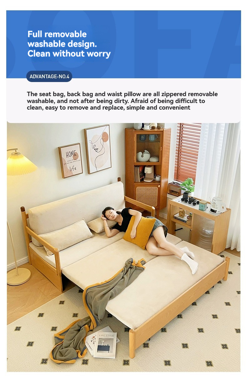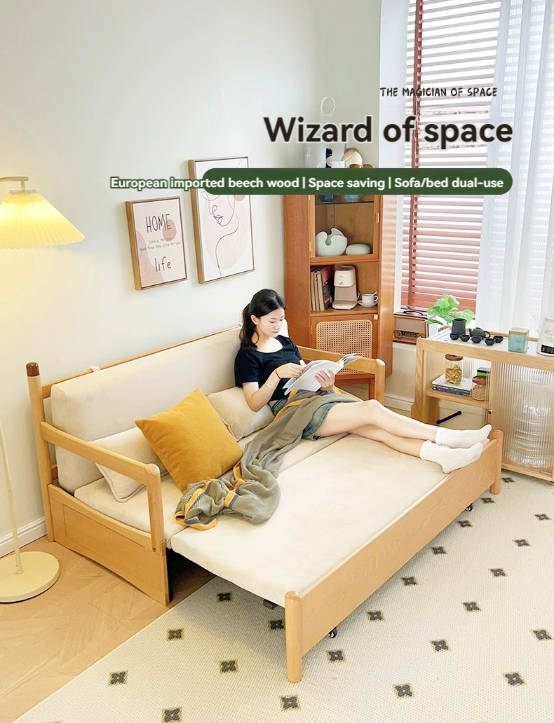[Pre-order]  LEMAX solid wood sofa bed, small apartment, living room, beech sofa, simple multi-functional foldable bed, bedroom dual-purpose-Smart-Living