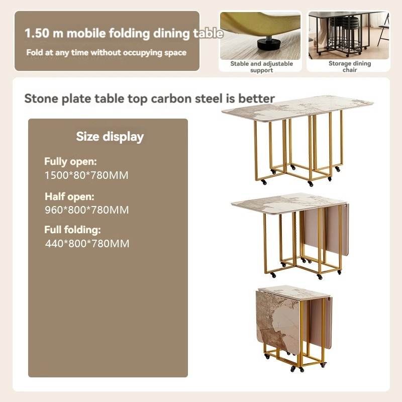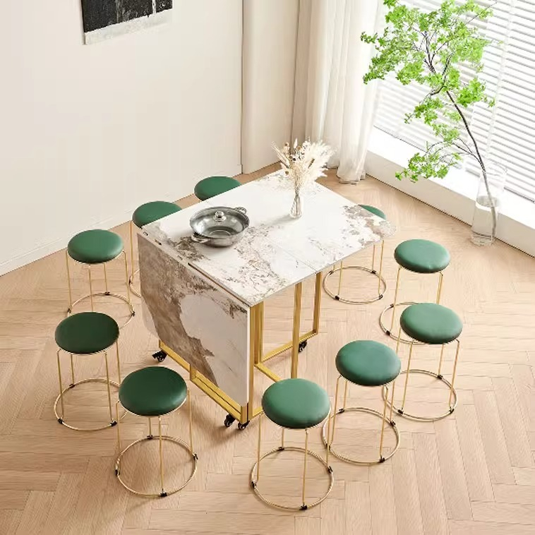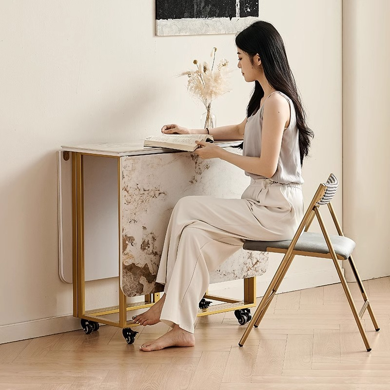 Light luxury folding dining table, small household marble rectangular dining table combination, modern and simple rock plate dining table-Smart-Living Light luxury folding dining table, small household marble rectangular dining table combination, modern and simple rock plate dining table-Smart-Living