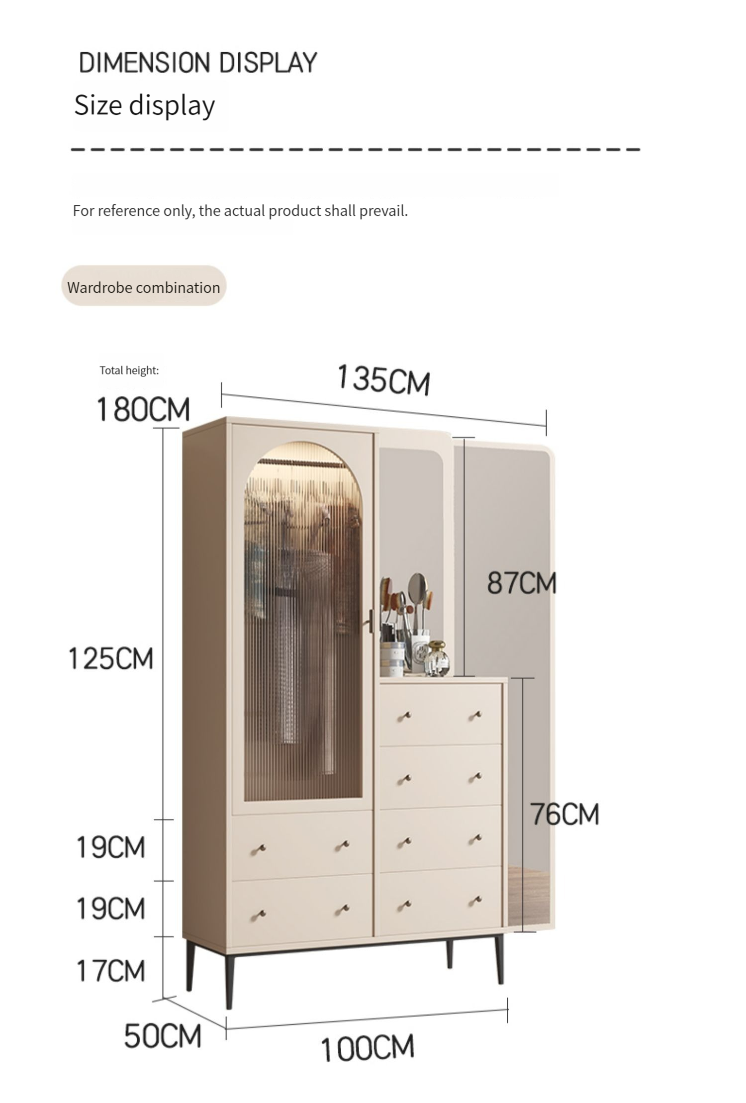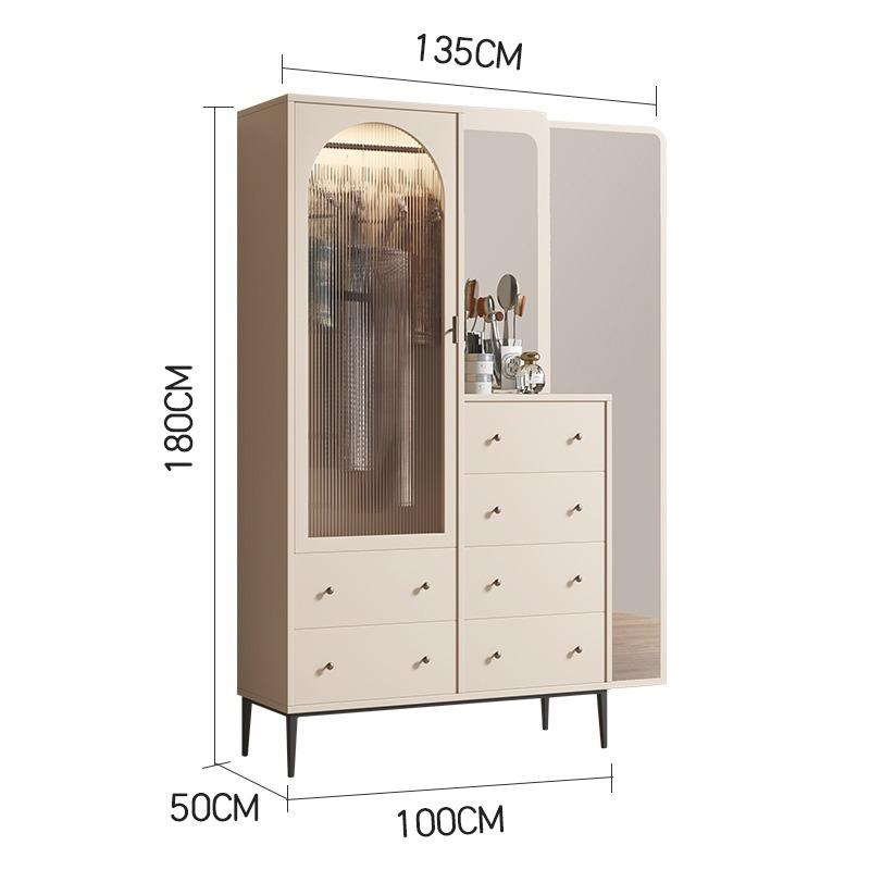 [Pre-order] Light Luxury Modern Minimalist Solid Wood Wardrobe Dressing Table With Mirror And Flat Door Single Door Wardrobe Bedroom Home