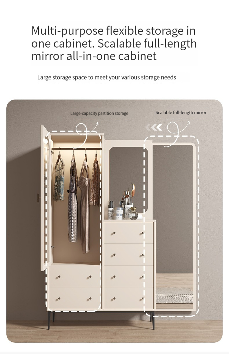 [Pre-order]  Light Luxury Modern Minimalist Solid Wood Wardrobe Dressing Table With Mirror And Flat Door Single Door Wardrobe Bedroom Home-Smart-Living [Pre-order]  Light Luxury Modern Minimalist Solid Wood Wardrobe Dressing Table With Mirror And Flat Door Single Door Wardrobe Bedroom Home-Smart-Living