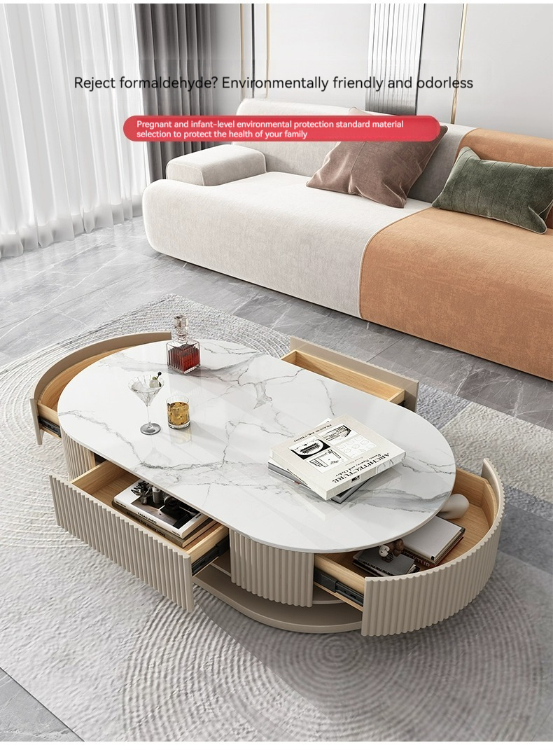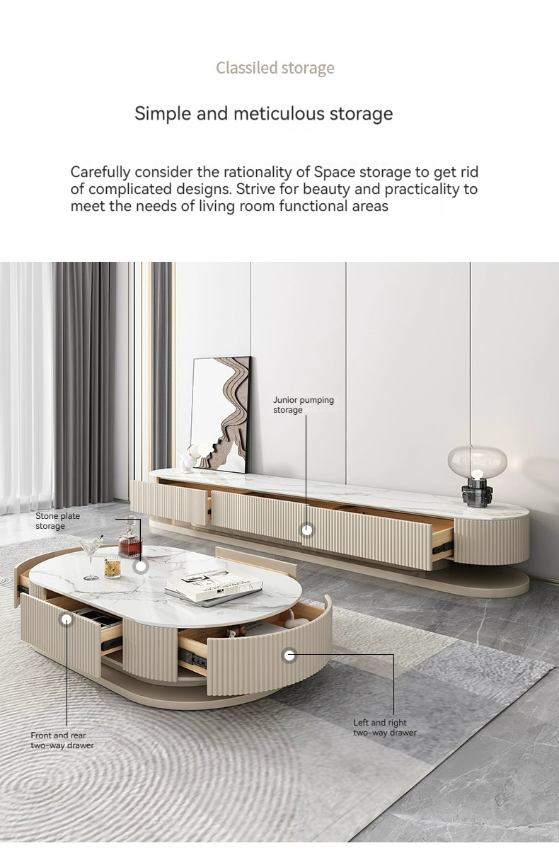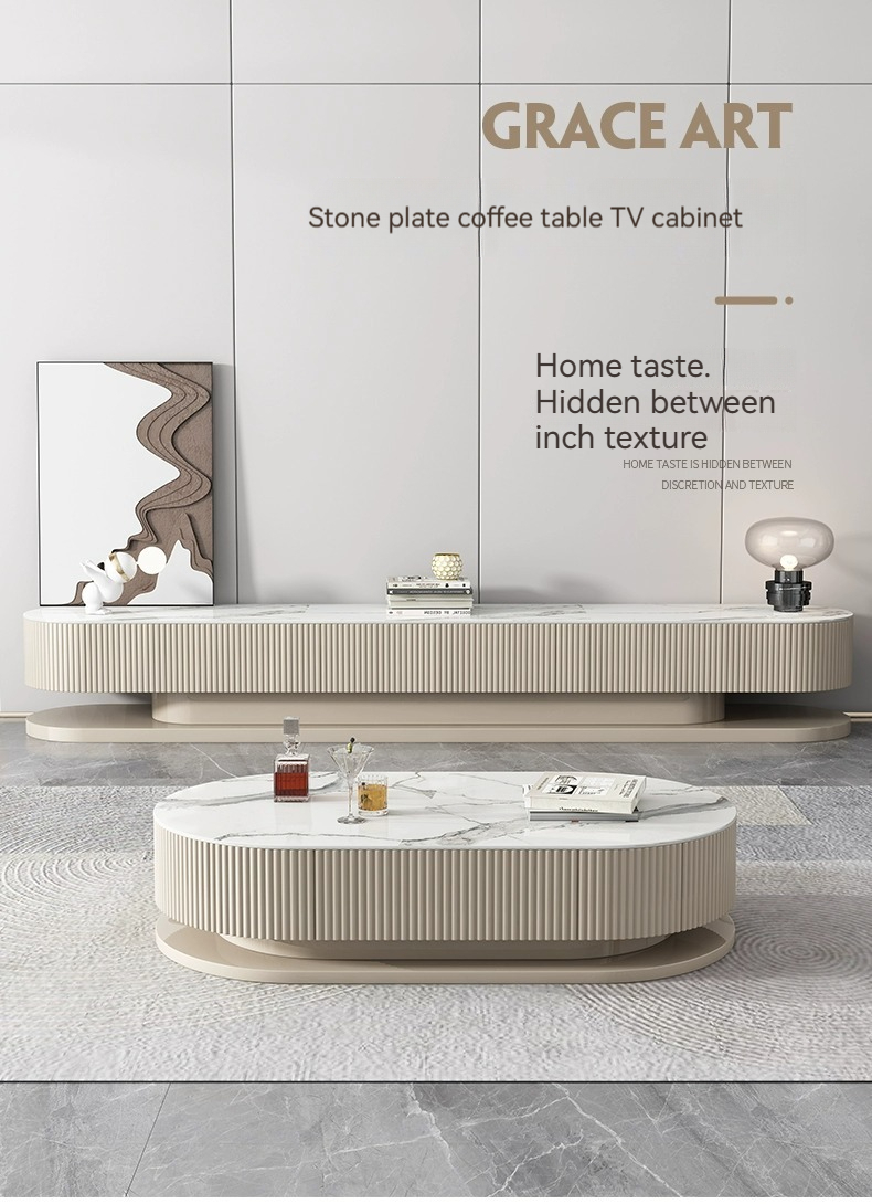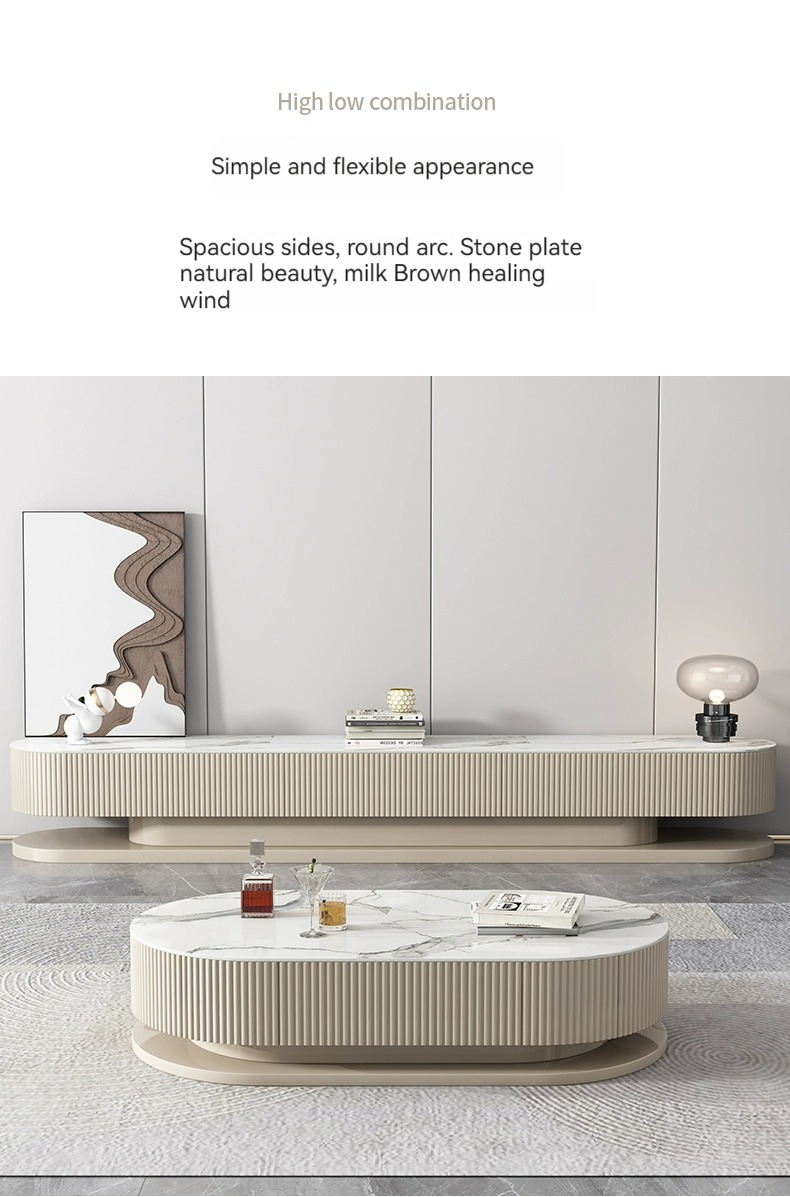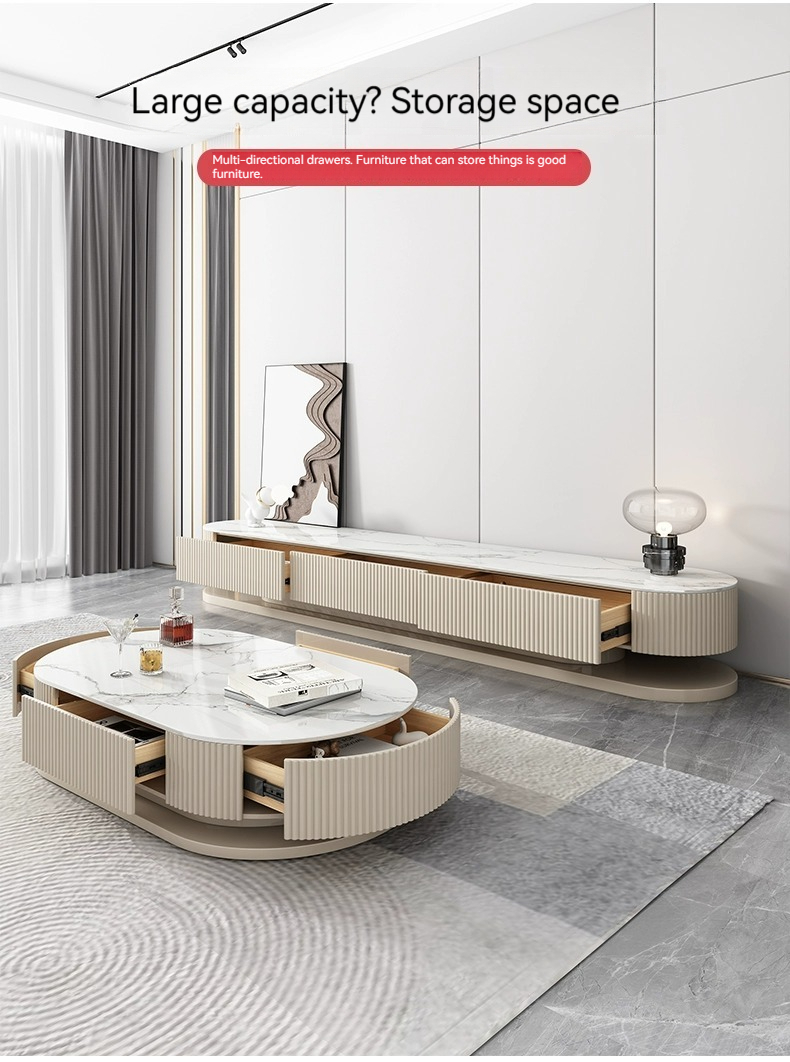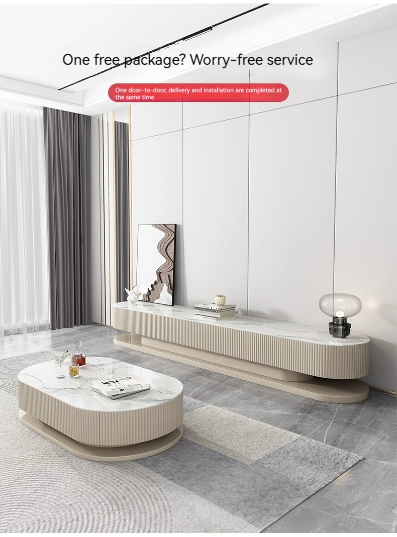 [Pre-order] Light luxury rock panel TV cabinet and coffee table combination of modern simple small apartment network red cream air floor TV cabinet-Smart-Living [Pre-order] Light luxury rock panel TV cabinet and coffee table combination of modern simple small apartment network red cream air floor TV cabinet-Smart-Living