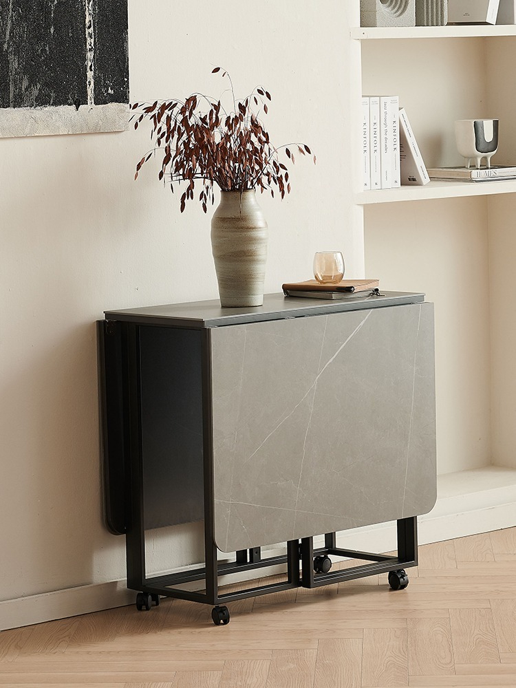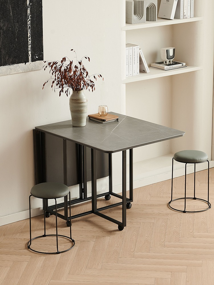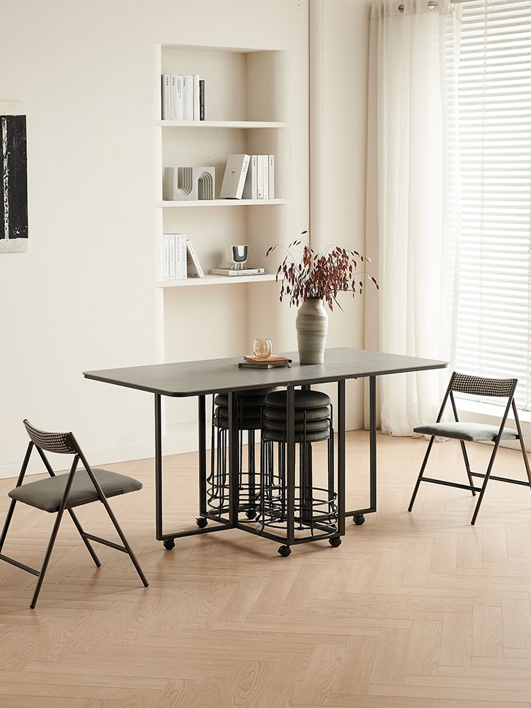 Nordic folding dining table, small household light luxury rectangular dining table, modern and minimalist apartment rock board folding table