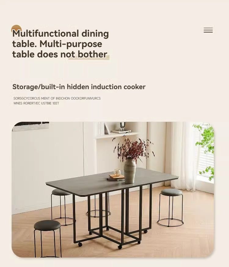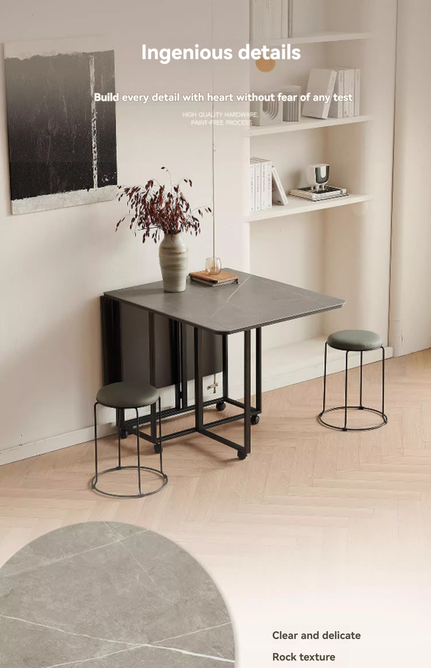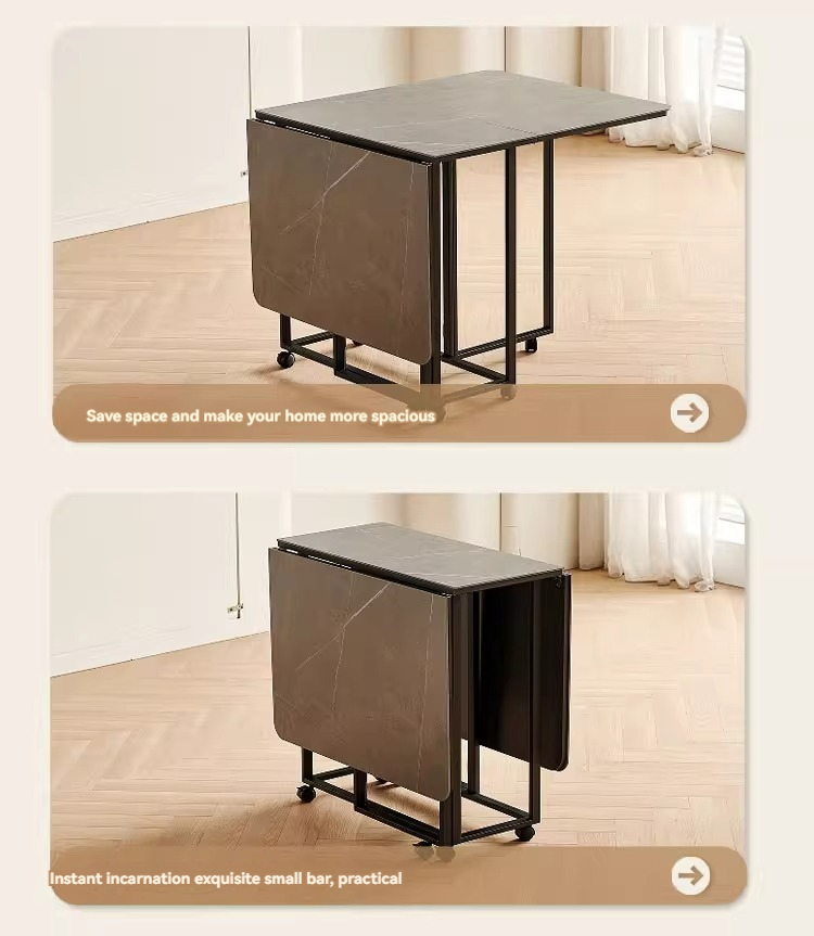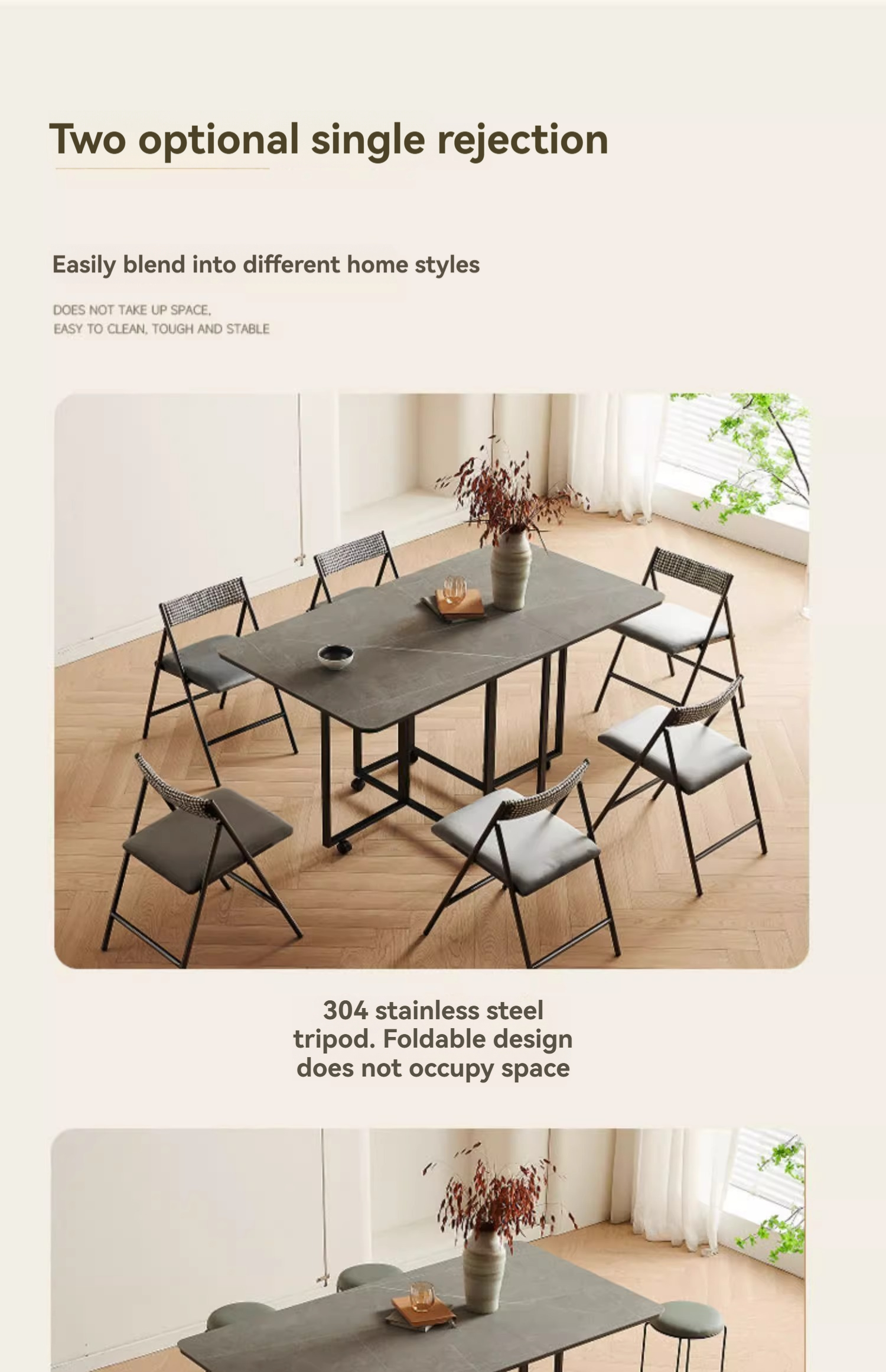 Nordic folding dining table, small household light luxury rectangular dining table, modern and minimalist apartment rock board folding table Nordic folding dining table, small household light luxury rectangular dining table, modern and minimalist apartment rock board folding table