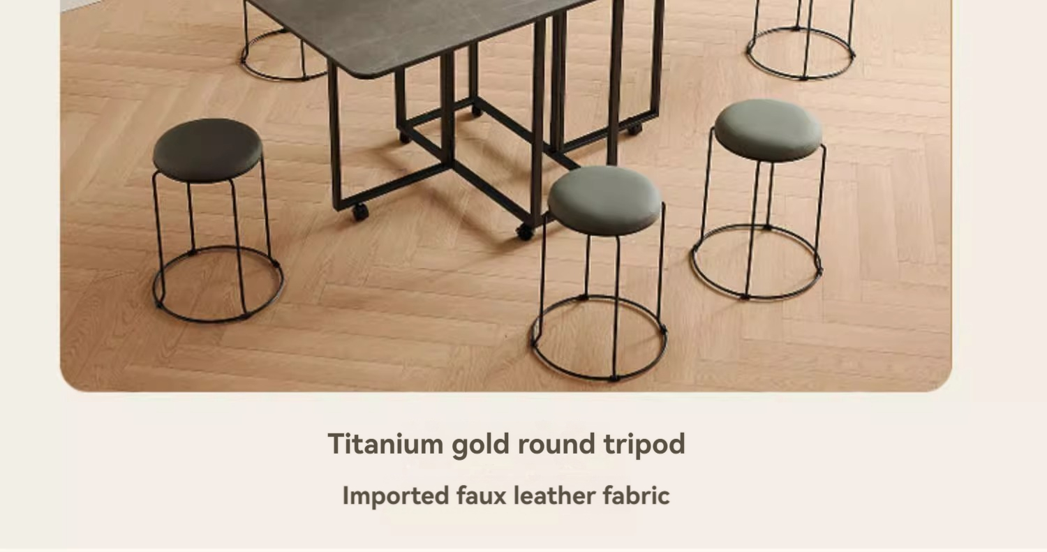Folding Dining Table with Rock Slabs + Round Stools*4