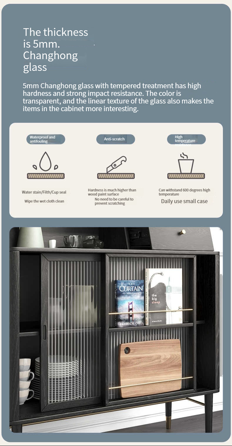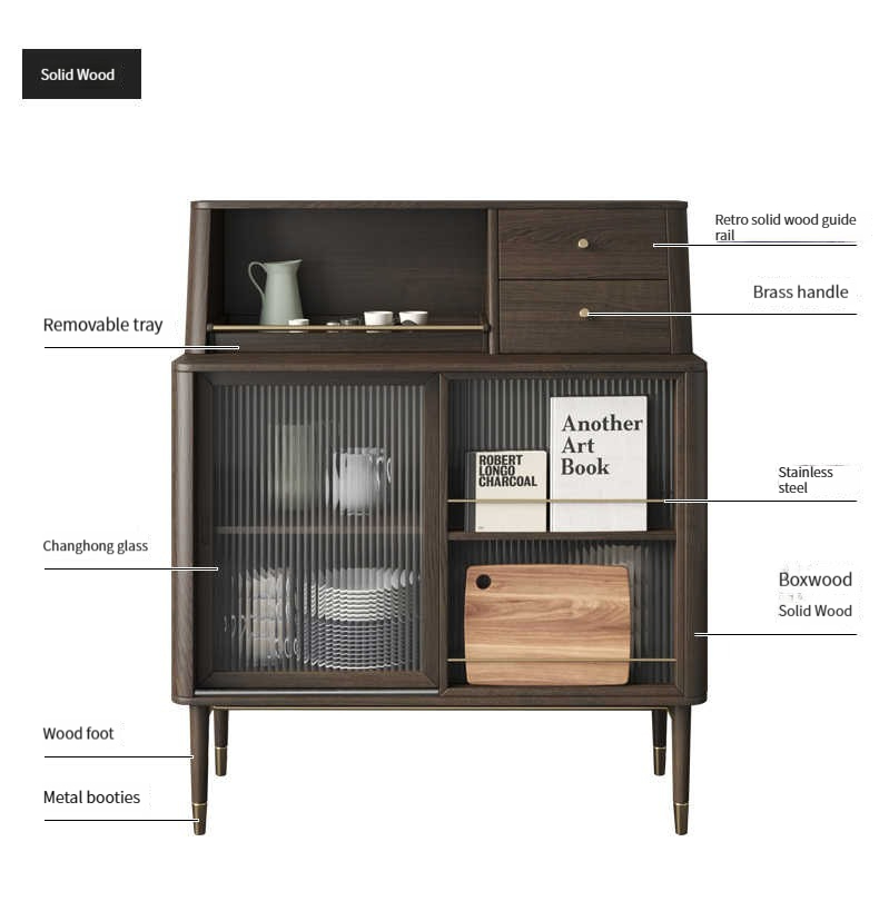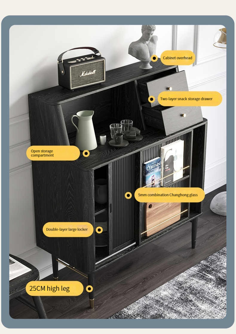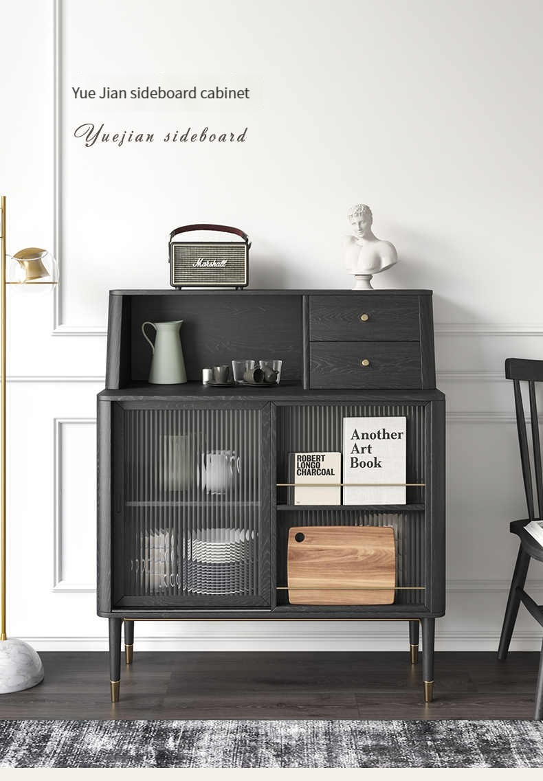 Nordic sideboard, modern and minimalist dining room, living room, boxwood color, wall facing, light luxury storage cabinet, glass door storage cabinet